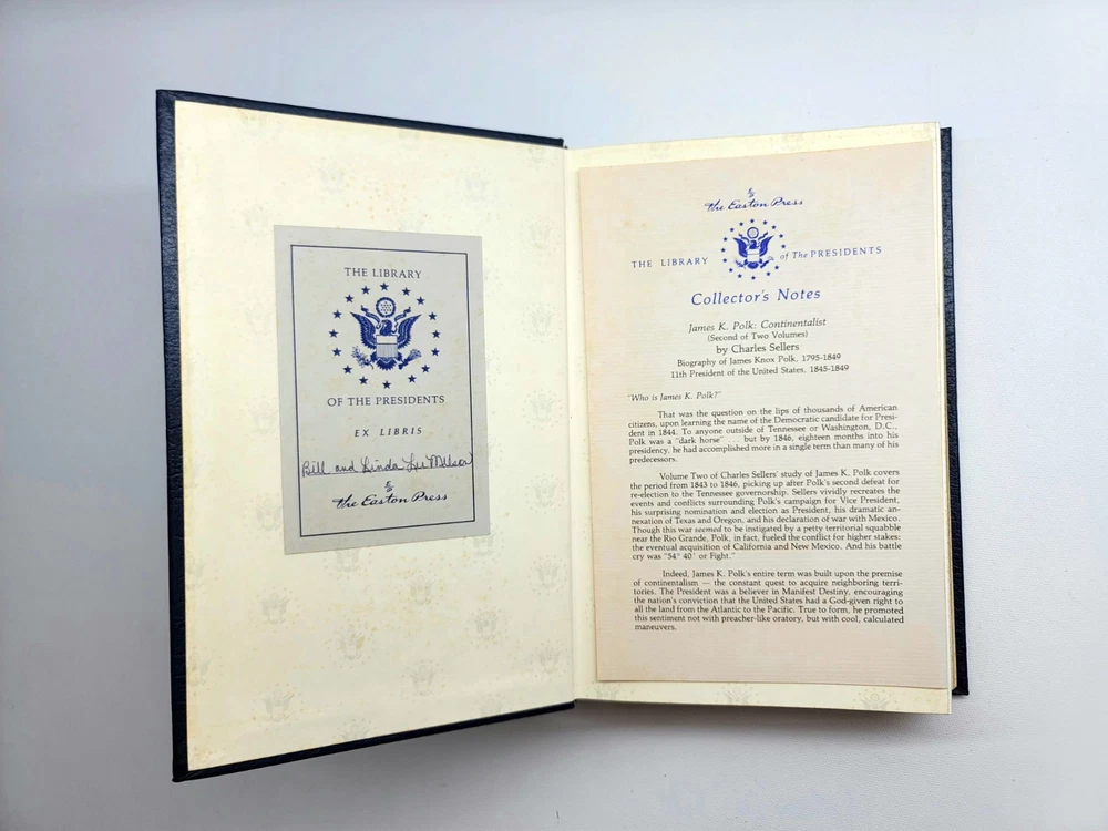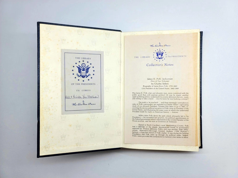 James K. Polk 2-Volume Set by Charles Sellers - Easton Press Leather Bound This is a used book with general edge and shelf wear, some fading to the covers and spotting on gilded page edges. No writing or highlights. Please utilize pictures to determine the exact condition of each item. If you have a question, please send a message, and I will answer you promptly. Thanks for looking.