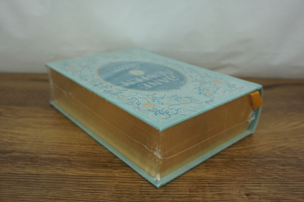 Item Details You are buying a like new copy of Jane Austen's Seven Novels Collectible Edition. The book contains the following works by Jane Austen: Sense and Sensibility, Pride and Prejudice, Mansfield Park, Emma, Northanger Abbey, Persuasion and Lady Susan. The book is bonded leather and has a ribbon bookmark. Items are still in original factory sealed condition, but there are scratches in the gilding of the book, see pictures for images of the types of defects. Shipping Details Domestic USA Orders only. Your item will be shipped via USPS mail. Payment Information & Terms of Sale I accept payments through eBay's managed payments system. Major credit cards, Paypal and other payment options are accepted. Please make your payments within 3 days of purchase. I will put your item in the mail within 1-2 business days after seeing payment. E-Bay may add sales tax for orders to certain States. Return Policy Returns will be accepted within 30 days of purchase. Partial returns are not be accepted, only complete sets of unopened packages will be accepted for return. Questions, Issues and Feedback I'm committed to providing all my customers fast and high quality service. If you have any questions or run into any issues with your order, please contact me through E-Bay and I'm happy to resolve any problems you may have. Your feedback is important. I'd ask you please take the time to provide positive feedback after you receive your order. I provide positive feedback to all customers I receive feedback from.