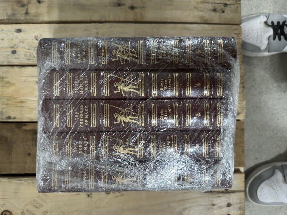 Easton Press Edgar Rice Burroughs Mars Series – 5 Volume Set (Leather Bound, Gilded Edges) READ FOR IMPORTANT DETAILS: Complete 5-book set in very good condition, featuring A Princess of Mars, The Gods of Mars, The Warlord of Mars, Thuvia Maid of Mars, and The Chessmen of Mars. Genuine leather-bound editions with 22kt gold gilt edges and satin ribbon markers. Carefully Saran wrapped for protection during storage and shipping. CONDITION: These books are used in very good condition. The set itself has been sealed as a whole with plastic wrap. SHIPPING: These books will be packaged securely with layers of bubble wrap and shipped in a box. These books will REQUIRE SIGNATURE DELIVERY.