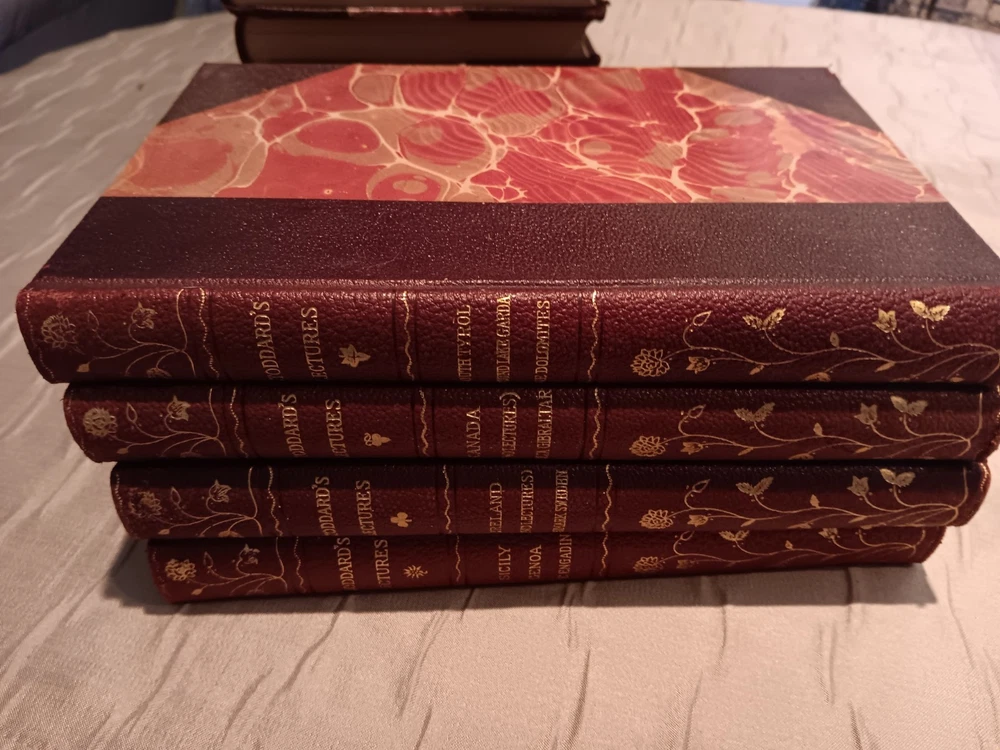 Used 14 books. These books have a few scuffs here and there, some smudges, or discoloration. The pages are crisp as if these books were barely read if at all. I am not a collector, but these look to be in nice condition for the age of the books. Books are dated 1897, 1898. Ireland dated 1901, Canada dated 1902, South Tykol dated 1903, Sicily genioia dated 1905. Thank you for looking.