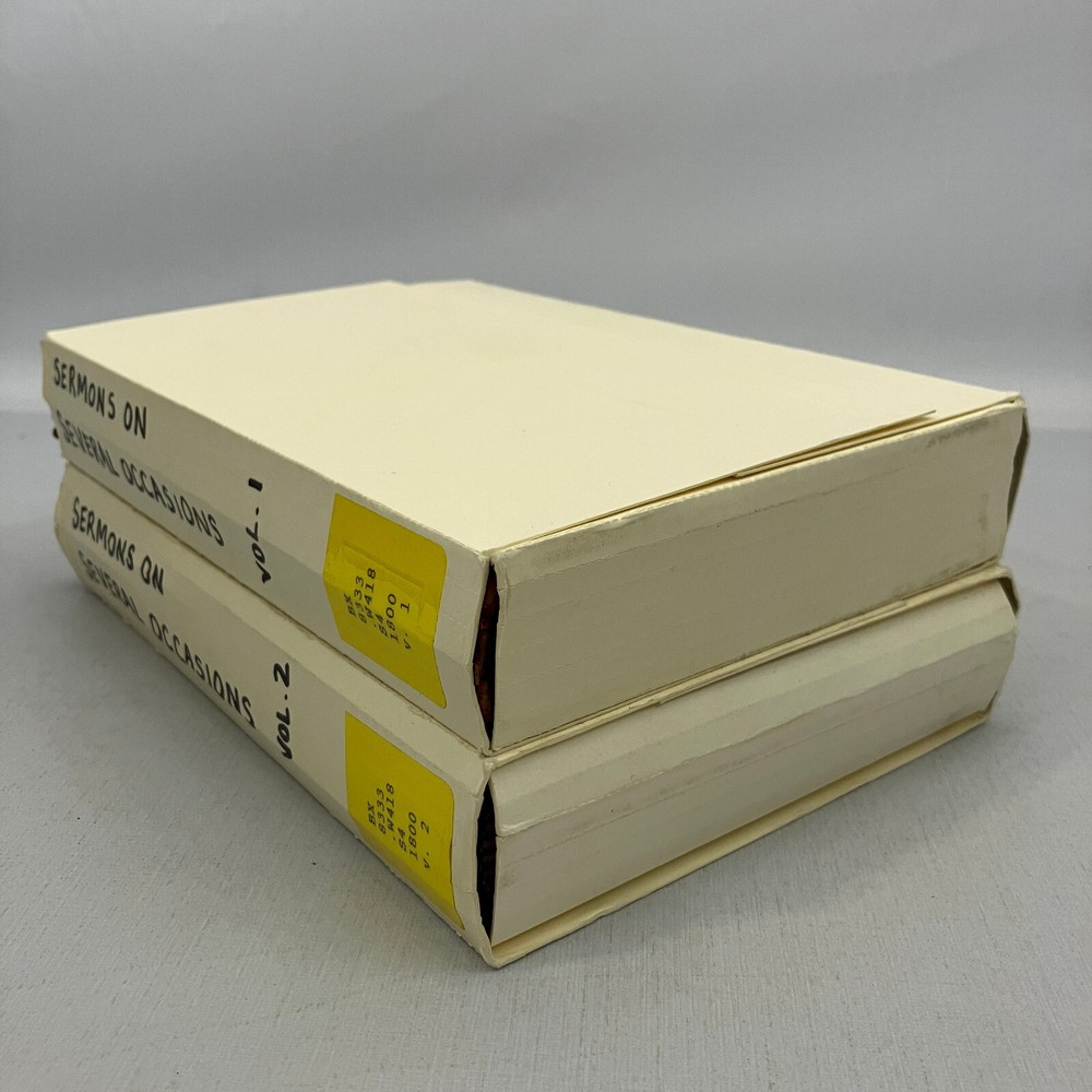 John Wesley Sermons on Several Occasions 2 Volume Set Antique Ex-Library These are used items with heavy wear to the covers and bindings, including detached pages and boards. Former library items have writing, stamps, or stickers seen on the boxes and inside including on the page after the title page. Covers are very weak. Writing inside the covers, including a date of 1902, no publication date printed in the books. There is heavy spotting and discoloration to the covers, spines, and pages. See pictures for overview of condition. We are BrightLight Books. We have sold tens of thousands of items online since 1998. Money Back Guaranteed! For Local Pickup in our Fern Park, FL store, please message us! 36-13 (2183051) 2/14/25 JW