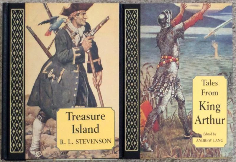 SHIPPING IN COVID TIMES: Please note that at this time, the post office is VERY VERY slow and if you need this by a specific time, you'll need to select Priority Mail or it may take a couple weeks or longer to get there. I know it's more expensive, but it's the only way to insure a quick delivery... NO RISK PURCHASE! See Below** TALES FROM KING ARTHUR EDITED by ANDREW LANG TREASURE ISLAND by R.L. STEVENSON ILLUSTRATED WORDSWORTH EDITION Ebay Mobile users: see FULL DESCRIPTION for complete details. Offered here is a slipcased set of two beautifully illustrated classics. Tales From King Arthur edited by Andrew Lang and Treasure Island by R. L. Stevenson. Included: Tales From King Arthur Edited by Andrew Lang with color illustrations by Walter Crane and E. F. Brickdale and line illustrations by H. J. Ford A ruler said to be the model of goodness over evil and a formidable comrade in the ever-present struggle between right and wrong, the figure of King Arthur of England prevails at the heart of the Arthurian legends. The myths surrounding his reign have been recounted in endless tales. This collection includes thirteen of the best-loved legends of the man and his Knights of the Round Table. Bewitching stories, related by one of the world's great storytellers, tell of how the young Arthur pulled a sword from a stone to become king; his meeting with the Lady of the Lake and acquisition of the mighty sword Excalibur; gatherings at the Round table; the death of Merlin; how the mysterious sorceress Morgan Le Fay attempted to kill Arthur; the quest for the Holy Grail; the romance of Lancelot and Guenevere, Arthur's wife; the passing of King Arthur, and more. Magnificent engravings appear throughout the text, further enhancing this splendid introduction to Camelot and its enchanting lore. 141pp Treasure Island by Robert Louis Stevenson with color illustrations by Monro S. Orr For sheer storytelling delight and pure adventure, Treasure Island has never been surpassed. From the moment young Jim Hawkins first encounters the sinister Blind Pew at the Admiral Benbow Inn until the climactic battle for treasure on a tropic isle, the novel creates scenes and characters that have fired the imaginations of generations of readers. Written by a superb prose stylist, a master of both action and atmosphere, the story centers upon the conflict between good and evil - but in this case a particularly engaging form of evil. It is the villainy of that most ambiguous rogue Long John Silver that sets the tempo of this tale of treachery, greed, and daring. Designed to forever kindle a dream of high romance and distant horizons, Treasure Island is, in the words of G. K. Chesterton, 'the realization of an ideal, that which is promised in its provocative and beckoning map; a vision not only of white skeletons but also green palm trees and sapphire seas.' G. S. Fraser terms it 'an utterly original book' and goes on to write: 'There will always be a place for stories like Treasure Island that can keep boys and old men happy.'218pp This is a BEAUTIFUL set that would make a wonderful addition to any home or personal library! A physical description follows... Below are just a few of the GORGEOUS illustrations within... For any of the other hundreds of items I have available use the link at the bottom of the page. And if you have any requests, by all means, send me an email; if I have it, I'll list it right away for you (no off eBay sales...) About Me & This Item... I am a private collector of art, books, music (10,000 records alone!) and "stuff" and am very picky about what I buy. I don't like surprises when I buy things from auctions any more than you do. I promise everything there is to know about this item is in this description. I also do not subscribe to "grading" as frankly, grading is totally inconsistent and most of the "graders" TRULY have no clue, so I will use plain English if it is OK with you... *A VERY gently handled and possibly read (although I doubt it) set of hardcover books in EXCELLENT condition, with original spicase as issued. Each is quarter-bound in black leather with picture inlay on the covers and gilt embellishments on the front covers and spines. The bindings are tight and solid, all pages intact, none loose, all crisp and clear showing a minimal amount of shelfwear from handling. The books appear to be new and unread but the slipcase has a small crunch in the bottom corner, probably from shipping (shown left). Each measures approximately 9.5" x 8" and is a VERY nice set! Enjoy... For over a decade, I have sold tens of thousands of items on eBay and have only received a handful of complaints about the accuracy in my descriptions. Having met eBay standards for excellence in trading, you may bid with confidence knowing you will get what you THINK you are bidding on! Please check my feedback. It is a record I am very proud of... I have LOTS of music items, and tons of books available for purchase. Please check my other offerings to see if there is anything else you might be interested in for combined shipping. There are links above and below and why not bookmark my site to make it easier to find at a later date! For over a decade, I have sold tens of thousands of items on eBay and have only received a handful of complaints about the accuracy in my descriptions. Having met eBay standards for excellence in trading, you may bid with confidence knowing you will get what you THINK you are bidding on! Please check my feedback. It is a record I am very proud of... I have LOTS of music items, and tons of books available for purchase. Please check my other offerings to see if there is anything else you might be interested in for combined shipping. There are links above and below and why not bookmark my site to make it easier to find at a later date! PAYMENT TERMS: Pretty simple. Pay me, I send it, BUT ONLY TO A REGISTERED ADDRESS! Please do not ask to have it sent to an alternate location as I won't be able to c