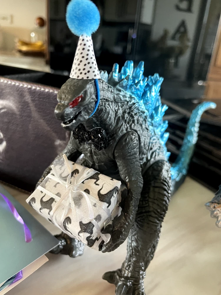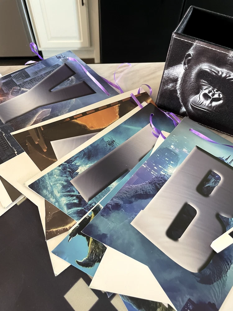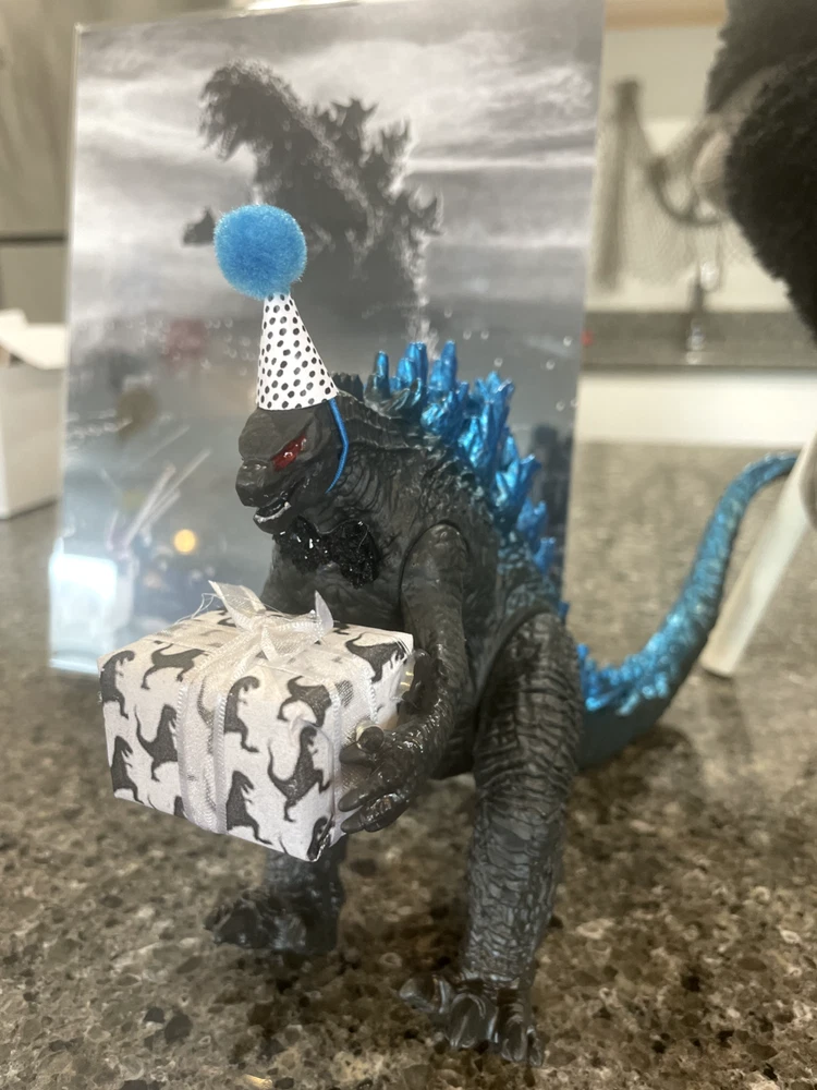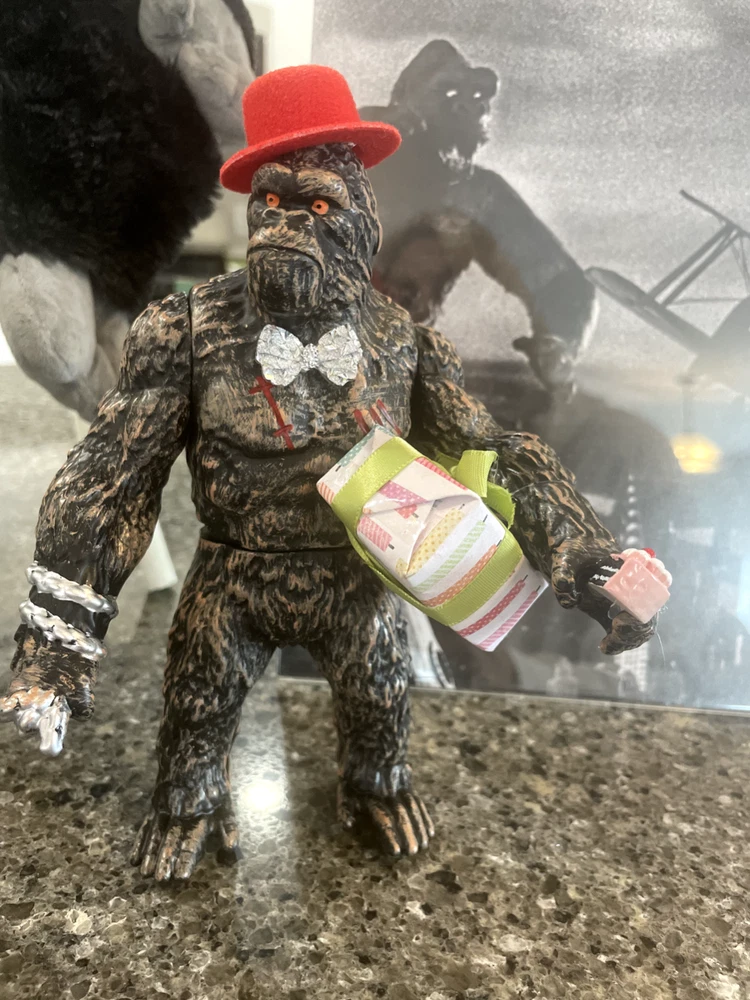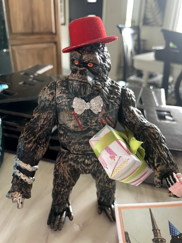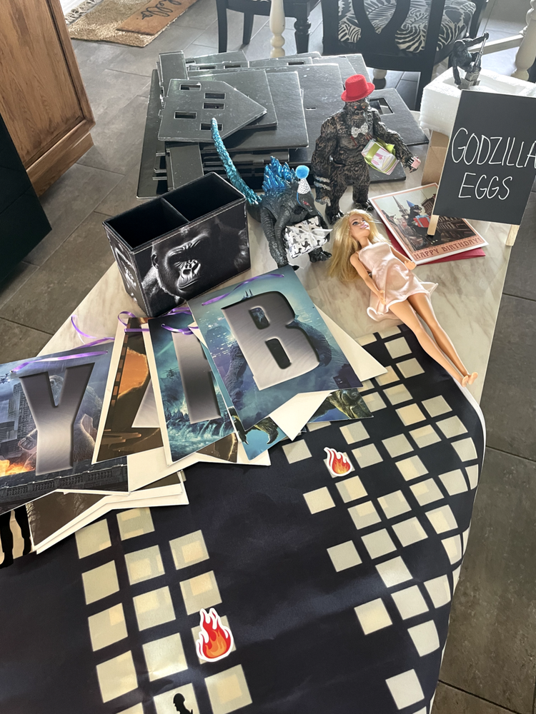 ITEMS INCLUDE 1 GODZILLA AND 1 KING KONG FIGURE DECORATED FOR BIRTHDAY PARTY ( PLEASE NOTE ACCESSORIES ARE HOT GLUED AND MAY FALL OFF) HAVE A GLUE GUN HANDY "I PAID $40.00 WITH SHIPPING FOR THE 2" 1 LARGE CITY CARDBOARD CUPCAKE STAND (THIS CAN BE HOT GLUED IF NECESSARY) WE DID NOT GLUE JUST DIDN'T OVERCROWD WITH TOO MUCH WEIGHT) COMES DISASSEMBLED 1 OLDER BARBIE (FOUND IN KIDS TOYS)TO SIT IN KONGS HANDS ***(KING KONG IS NOT INCLUDED) ***** CHALKBOARD MINI SIGN THAT WE WROTE GODZILLA EGGS ON (WE PUT IT BY CAKE POPS) DOLLAR TREE KING KONG COSMETIC HOLDER (WE USED FOR FORKS AND SPOONS BY DESSERTS) BRAND NEW CITYSCAPE BANNER " WE ADDED MANY DECALS AND SOME FLAME STICKERS" ( WE PUT IT ON LARGE PIECE OF CARDBOARD WITH DOUBLE FACE TAPE) IT WILL COME FOLDED. PLEASE NOTE COUPLE FLAMES MAY FALL OFF DURING SHIPPING MINI KING KONG CLIMBING BUILDING (CAN BE USED ON SMALL SMASH CAKE OR TUCK INTO DECOR) 1 GODZILLA "HAPPY BIRTHDAY CARD" I SLID THIS INTO A CLEAR PLASTIC FRAME FROM DOLLAR TREE 4X 6 ONE LARGE FLAME STICKER (PURCHASED TO PUT ON BANNER BUT IT DIDN'T ARRIVE ON TIME) HAPPY BIRTHDAY PAPER BANNER (EACH LETTER FEATURES A DIFFERENT GODZILLA OR KING KONG PICT) TOTAL OF 11 ITEMS POSTED PICTS OF THE ITEMS AT THE PARTY PLEASE EMAIL WITH ANY QUESTIONS