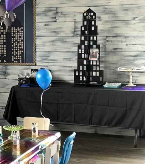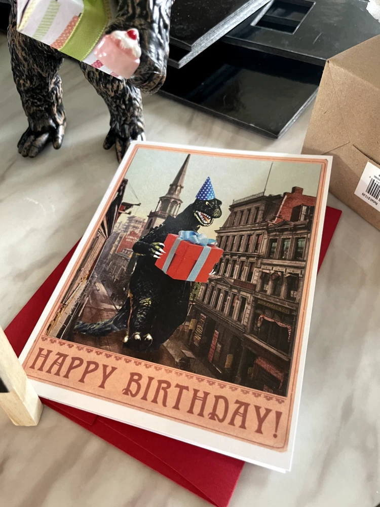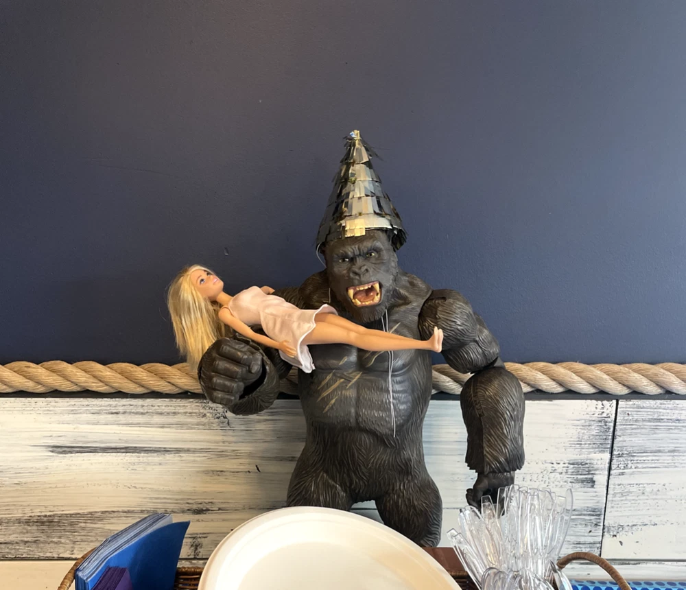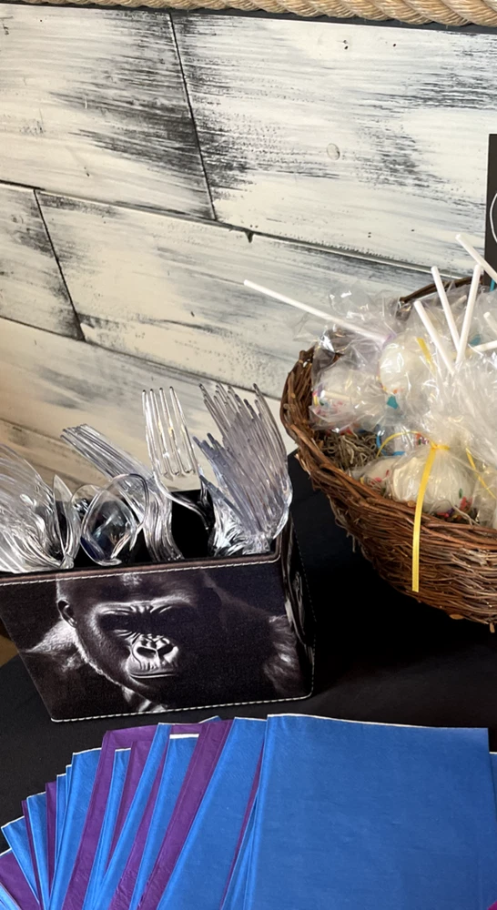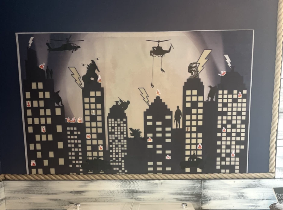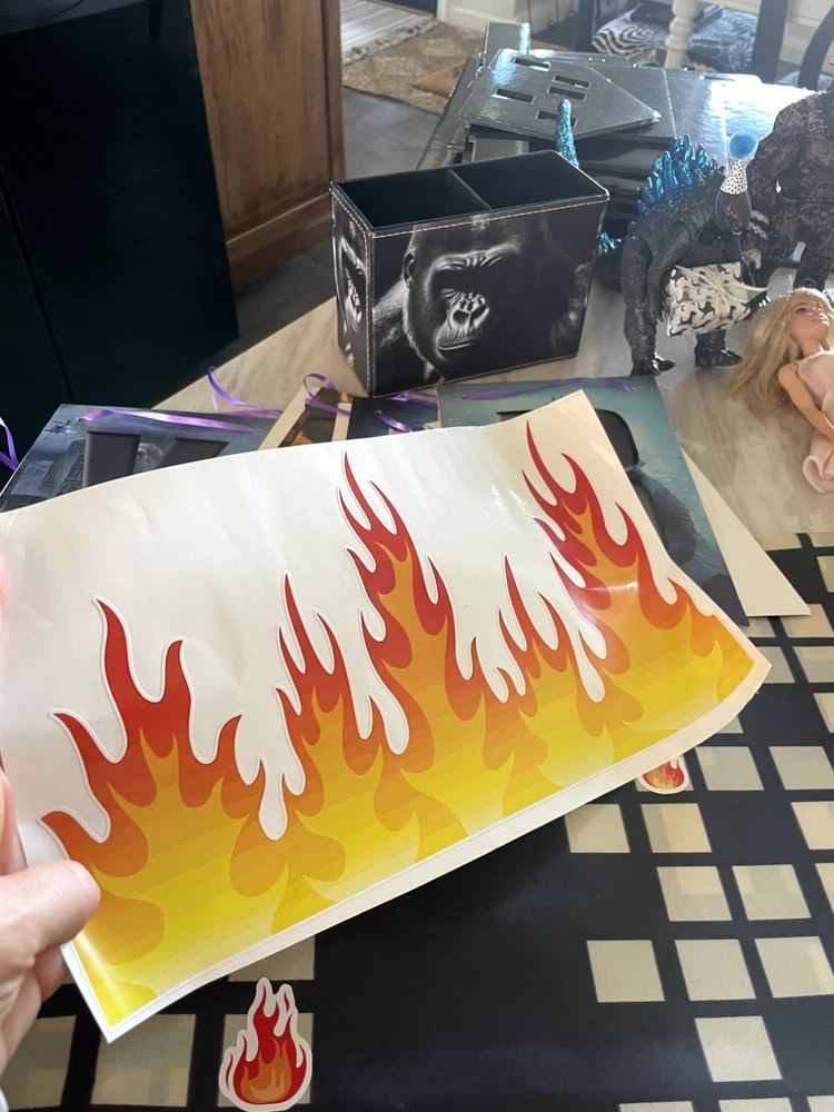 ITEMS INCLUDE 1 GODZILLA AND 1 KING KONG FIGURE DECORATED FOR BIRTHDAY PARTY ( PLEASE NOTE ACCESSORIES ARE HOT GLUED AND MAY FALL OFF) HAVE A GLUE GUN HANDY "I PAID $40.00 WITH SHIPPING FOR THE 2" 1 LARGE CITY CARDBOARD CUPCAKE STAND (THIS CAN BE HOT GLUED IF NECESSARY) WE DID NOT GLUE JUST DIDN'T OVERCROWD WITH TOO MUCH WEIGHT) COMES DISASSEMBLED 1 OLDER BARBIE (FOUND IN KIDS TOYS)TO SIT IN KONGS HANDS ***(KING KONG IS NOT INCLUDED) ***** CHALKBOARD MINI SIGN THAT WE WROTE GODZILLA EGGS ON (WE PUT IT BY CAKE POPS) DOLLAR TREE KING KONG COSMETIC HOLDER (WE USED FOR FORKS AND SPOONS BY DESSERTS) BRAND NEW CITYSCAPE BANNER " WE ADDED MANY DECALS AND SOME FLAME STICKERS" ( WE PUT IT ON LARGE PIECE OF CARDBOARD WITH DOUBLE FACE TAPE) IT WILL COME FOLDED. PLEASE NOTE COUPLE FLAMES MAY FALL OFF DURING SHIPPING MINI KING KONG CLIMBING BUILDING (CAN BE USED ON SMALL SMASH CAKE OR TUCK INTO DECOR) 1 GODZILLA "HAPPY BIRTHDAY CARD" I SLID THIS INTO A CLEAR PLASTIC FRAME FROM DOLLAR TREE 4X 6 ONE LARGE FLAME STICKER (PURCHASED TO PUT ON BANNER BUT IT DIDN'T ARRIVE ON TIME) HAPPY BIRTHDAY PAPER BANNER (EACH LETTER FEATURES A DIFFERENT GODZILLA OR KING KONG PICT) TOTAL OF 11 ITEMS POSTED PICTS OF THE ITEMS AT THE PARTY PLEASE EMAIL WITH ANY QUESTIONS