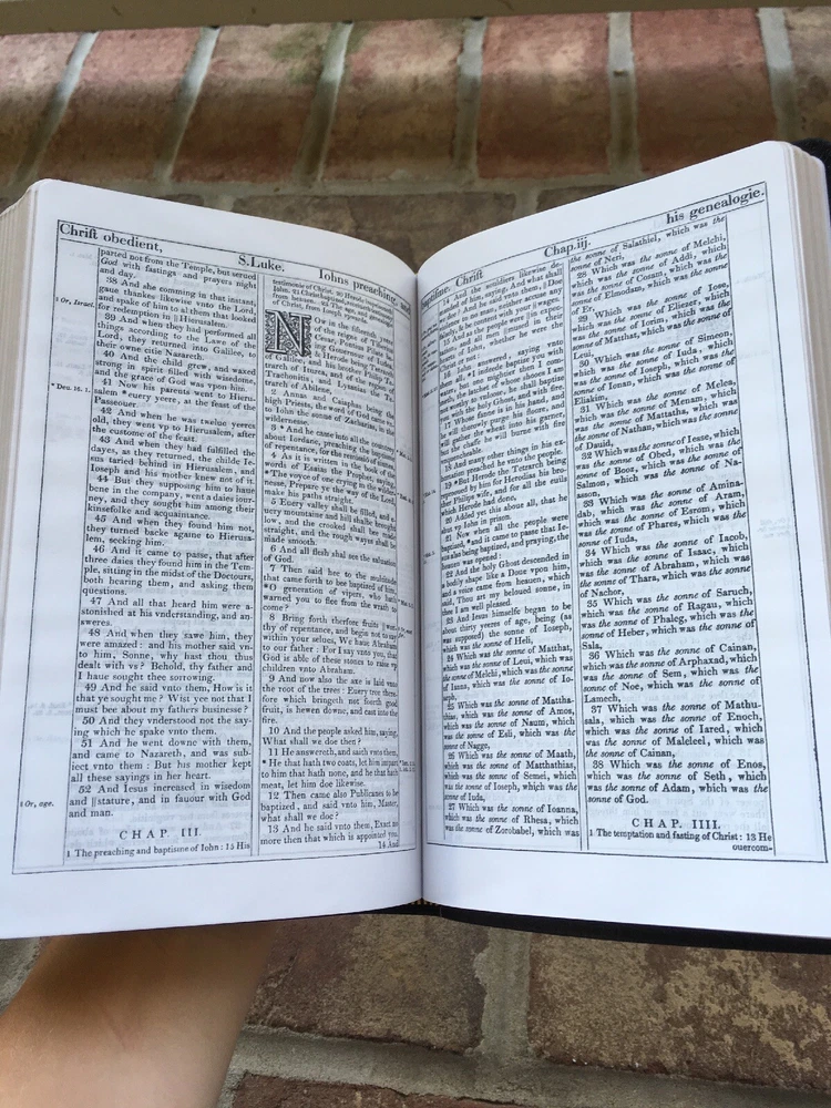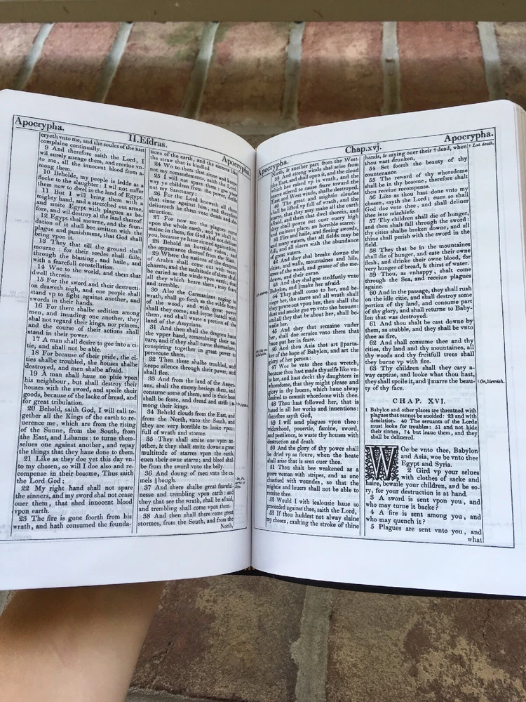 KJV 1611 Bible ~With Aprocrypha ~Genuine Leather ~ Sewn Binding ~Black Letter Text ~ 8 point font (small-medium) ~ Measure 8.5 x 5.5 x 1.25 (inches) Dear Valued Customer! Feel free to ask any questions you have. I try to answer questions within 24 hours. (Often within 1 hour). If you have questions about shipping, please ask. I will be glad to explain it. International customers - If you would like to combine shipping and save lots of money when purchasing several items - message me BEFORE you purchase the items. I cannot combine shipping after the purchase has been made. I offer hassle free returns. If for any reason you are not satisfied with your purchase, you may return the item for a refund. If the item is not as described or was damaged in shipping, I will pay all shipping costs. If you have changed your mind about the purchase, (you just didn't like it/changed your mind about the purchase) I will still issue a refund, but I can not pay for the return shipping or the cost of shipping it initially. Please buy responsibly :) And of course, if you have any concerns with your purchase, please reach out to me and I will try to do my best to help. I strive for 100% positive feedback.
