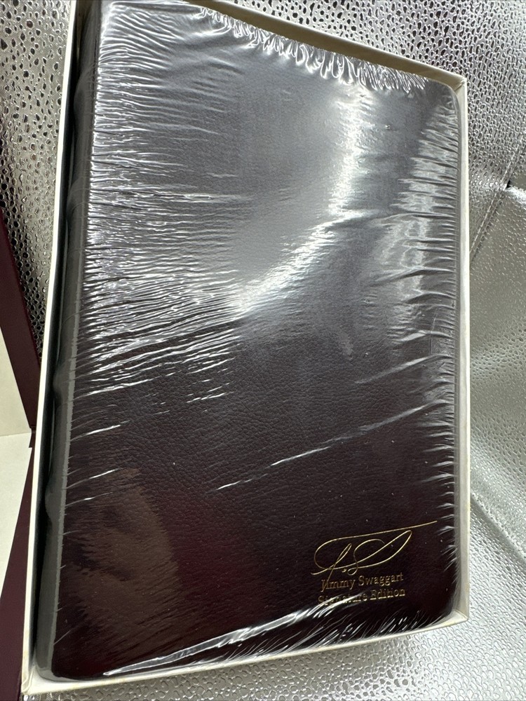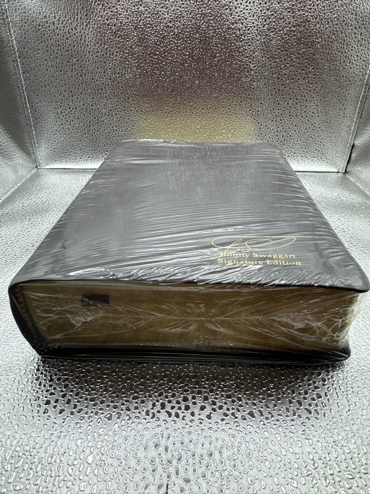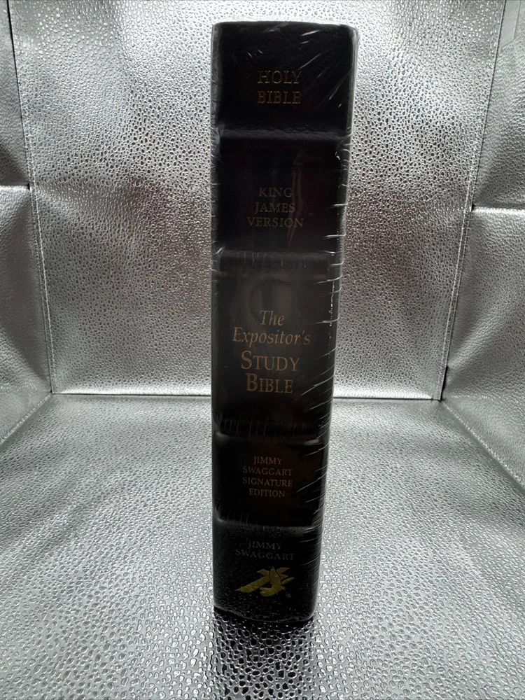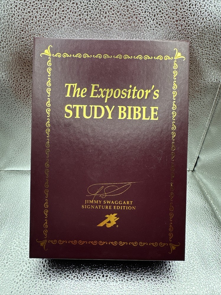 This KJV Expositor’s Study Bible is a must-have for anyone interested in religious and spiritual studies. With a focus on biblical commentary and general subjects, this premium genuine leather Bible is packed with valuable features, including a concordance, gold gilded page edges, harmony of the gospels, as well as many other features you will see listed under the specifics section. The Jimmy Swaggart Signature Edition is a special addition to this already valuable Bible, with a beautiful Cromwell Premium leather-bound cover and the added personal touch of being signed by the author on the front cover of the Bible. This Bible also comes with the original box it was purchased in as you will see in the pictures. The Bible has 2440 pages and measures 9.5 inches in length and 6.5 inches in width, with a thickness of 2.5 inches. This Bible is perfect for anyone looking to expand their knowledge of the Bible. Please see pictures for additional details of items