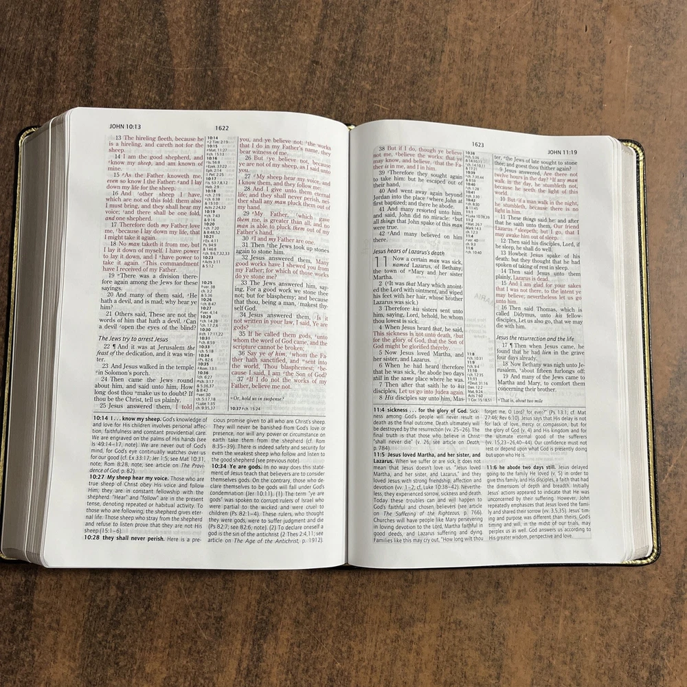 The Bible arrived in good condition well packed and exactly as represented by the seller. A good value for the price. I would definitely patronize this seller again for similar items in the future.