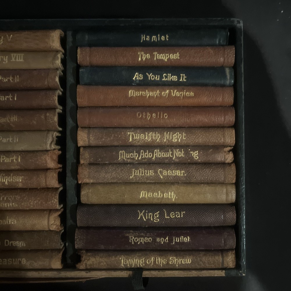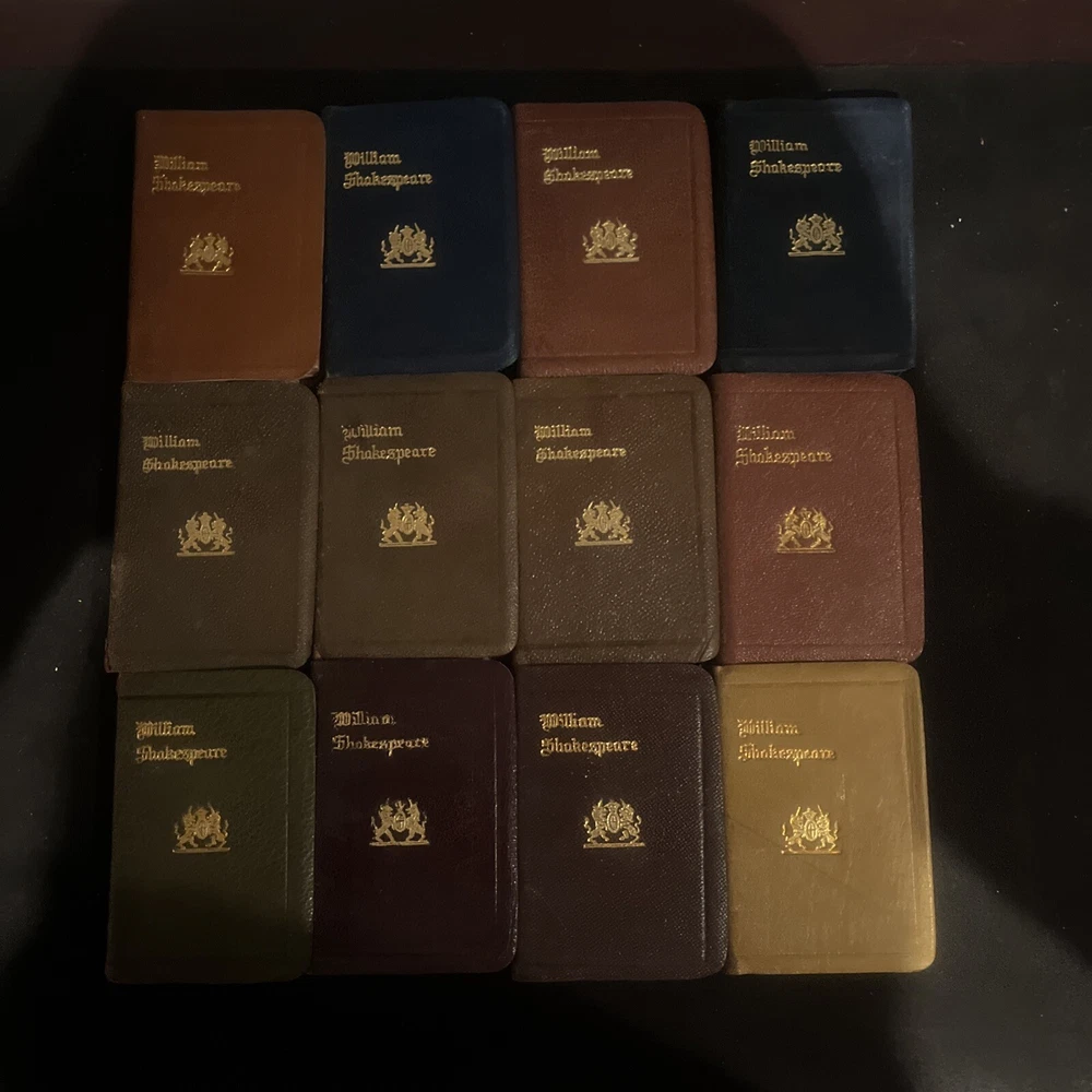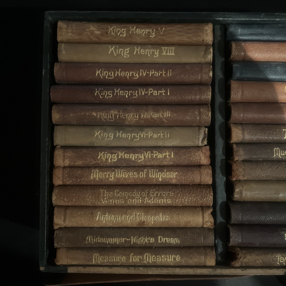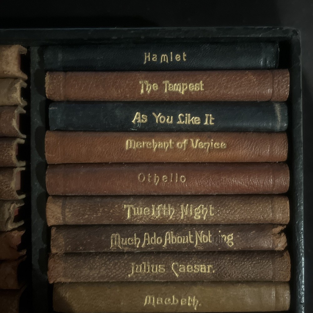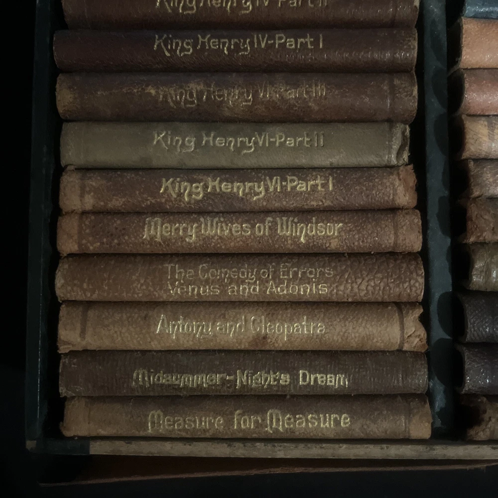 KNICKERBOCKER LEATHER NOVELTY SHAKESPEARE COMPLETE 24 VOL. MINI BOOK SET ANTIQUE. Shipped with USPS Media Mail....