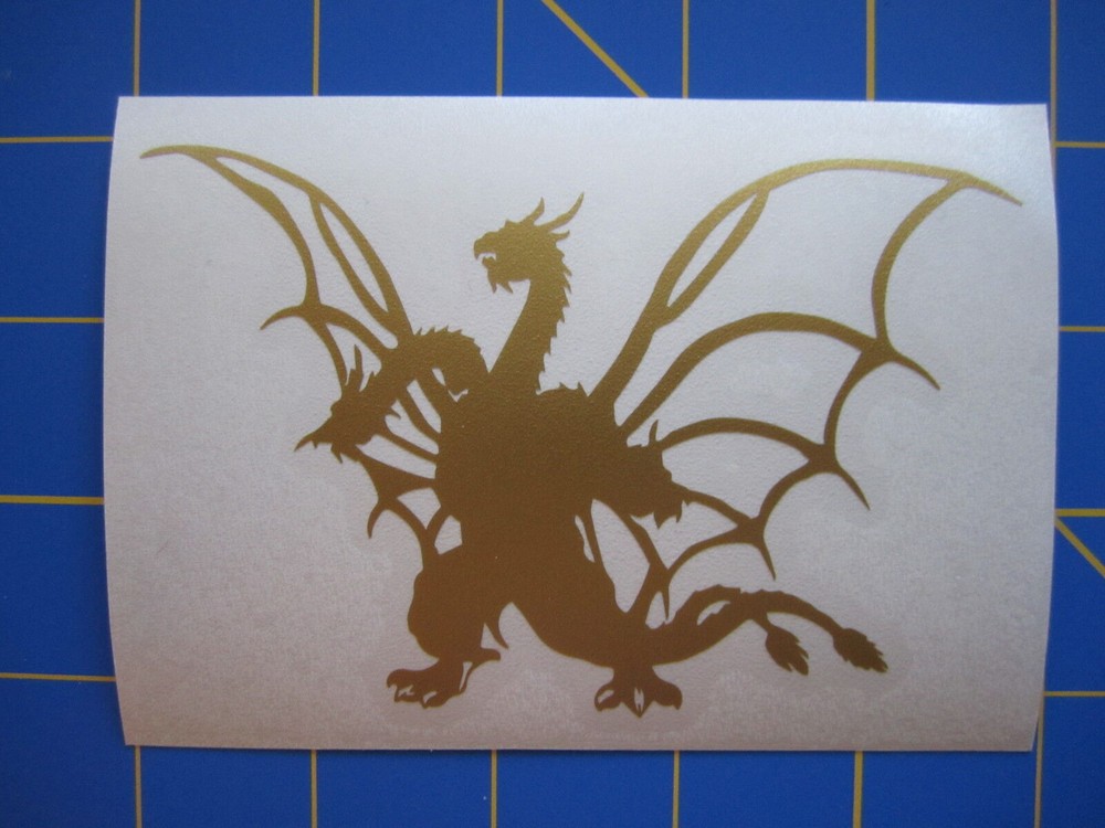 **If you don't receive your decal please let me know by clicking on Contact Seller next to your item. Please do not open a case. USPS is constantly losing mail. It's not my fault. I use only a stamp to send and then mark your item shipped. If you want tracking as stated below it will cost extra. Shipping in the US can take up to 7 mailing days once marked shipped and international 2-3 weeks. I can either send you a replacement or issue a refund if this happens. Please note: The decals ship with a first class stamp. If you wish to have tracking for your order please send me a message before you purchase so I can give you an estimate on cost. Tracking for first class mail starts at $4 for US orders. King Ghidorah decal cut with premium 6 year outdoor vinyl and will arrive ready to stick any flat, smooth, and clean surface. See the additional color swatch picture to see actual color. ****** I can also do custom sizes, make decal face right or left, and add text if you like. Message me for custom orders. (Additional cost may apply to custom orders.) Installation Instructions: Temperature above 50 Fahrenheit or 10 Celsius Clean the surface, window, bumper, laptop, etc... & let dry (we recommend "windex"). Line up your new sticker to make sure it fits and looks good, prior to adhering. Peel the backing paper away from the sticker. Place the sticker on your clean surface & rub gently. Carefully peel away the clear application tape. Gently rub the decal with finger to secure. PLEASE NOTE: DO NOT TRY to apply the decal to anything when the temperature is below 50 degrees Fahrenheit or 10 Celsius . I cannot guarantee that the decal will be successful in being applied or staying applied. PLEASE NOTE: ORDERS SHIP WITHIN 3-5 BUSINESS DAYS