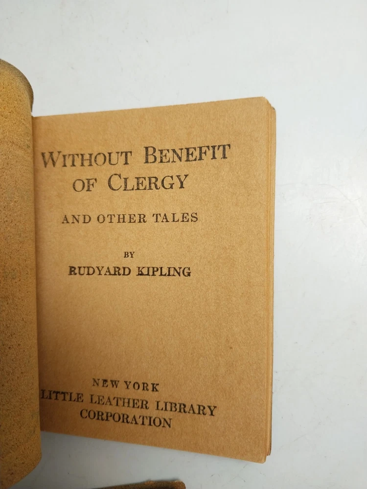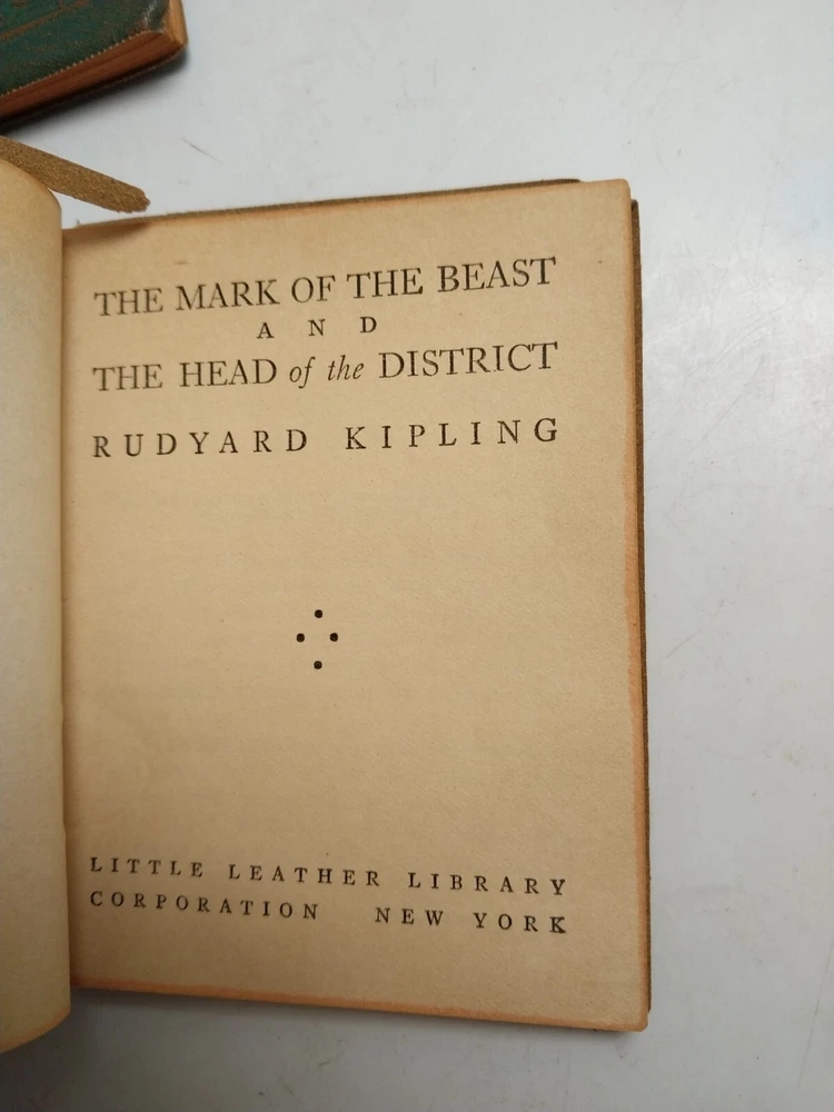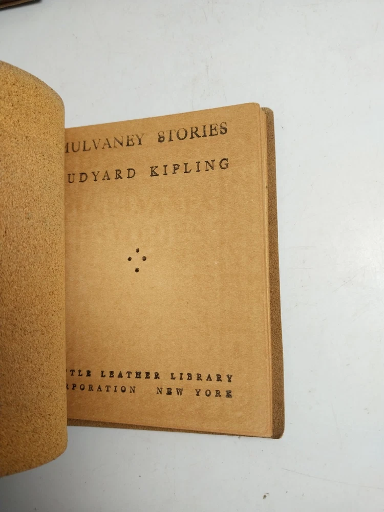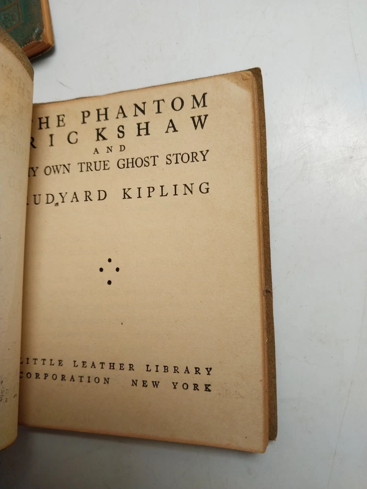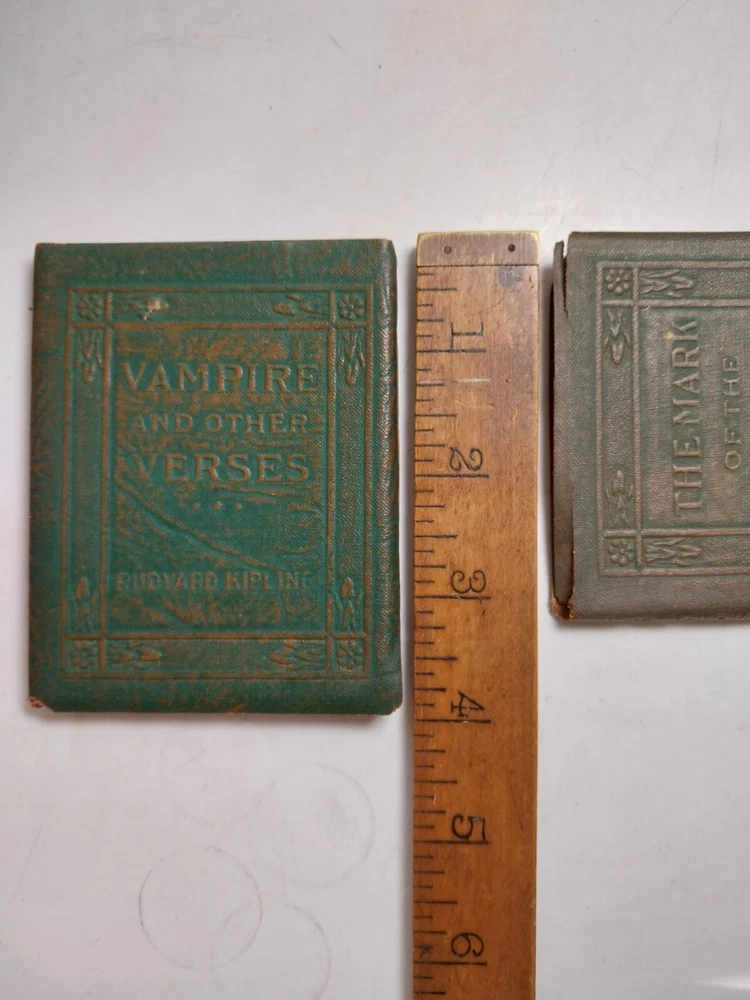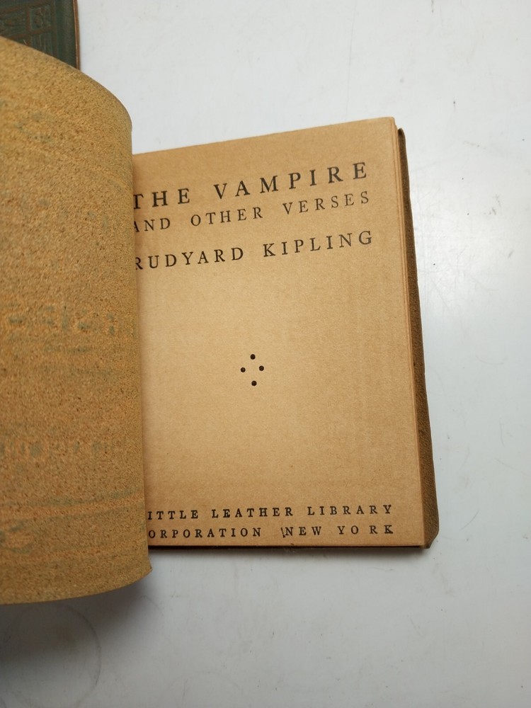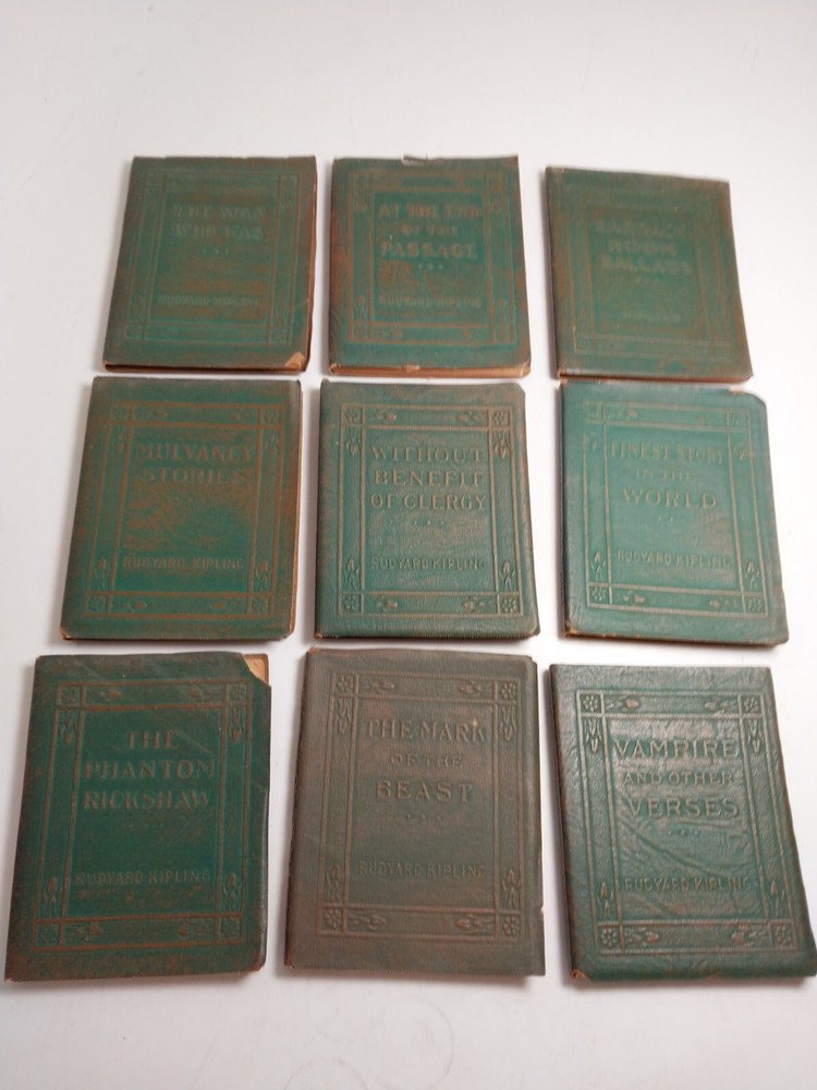 Kipling Vampire & Others Little Leather Library Redcroft Miniature 9 Book set Book set measures approximately 3" x 4" and is in good used condition with some signs of age, use, and wear; age related toning to pages, cover wear and tears, some with loose text, please see photographs for condition detail