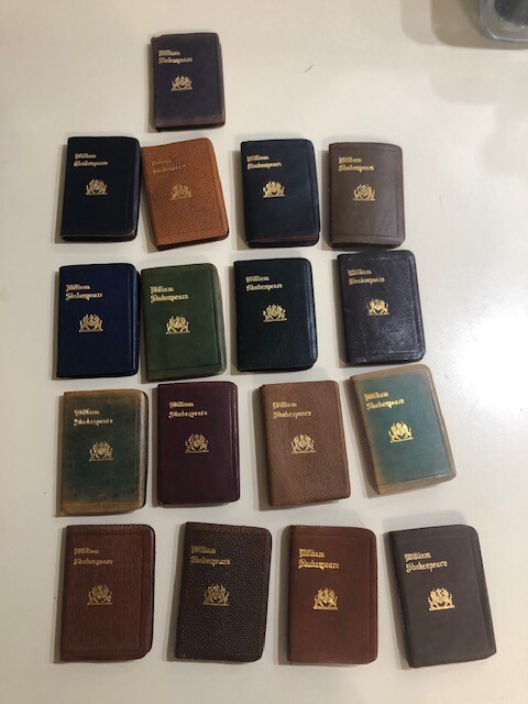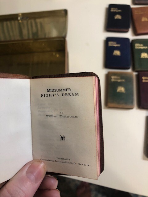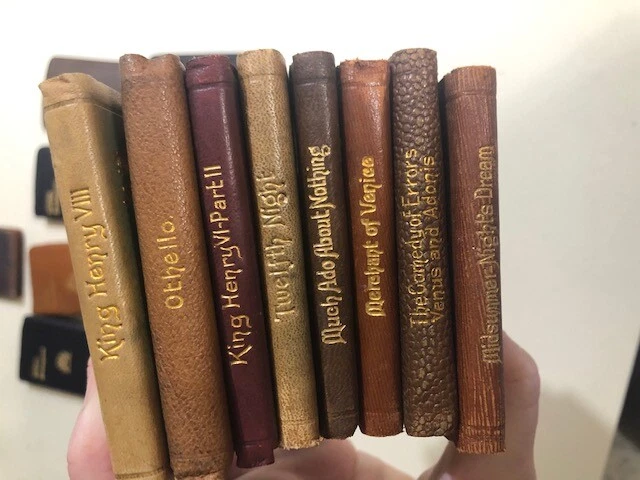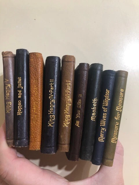 Vintage Knickerbocker Leather & Novelty Co. Shakespeare 17 Mini Book Set. Books are in good condition except some fading on a few of the leather book covers. Please see pictures for fading in color.