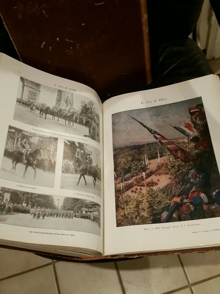 L'ALBUM DE LA GUERRE 1914-1919. Illustrated - 1922 / Leather Bound volume 1 and 2. Poor condition bad covers torn pages water stained pages missing pages loose pages...