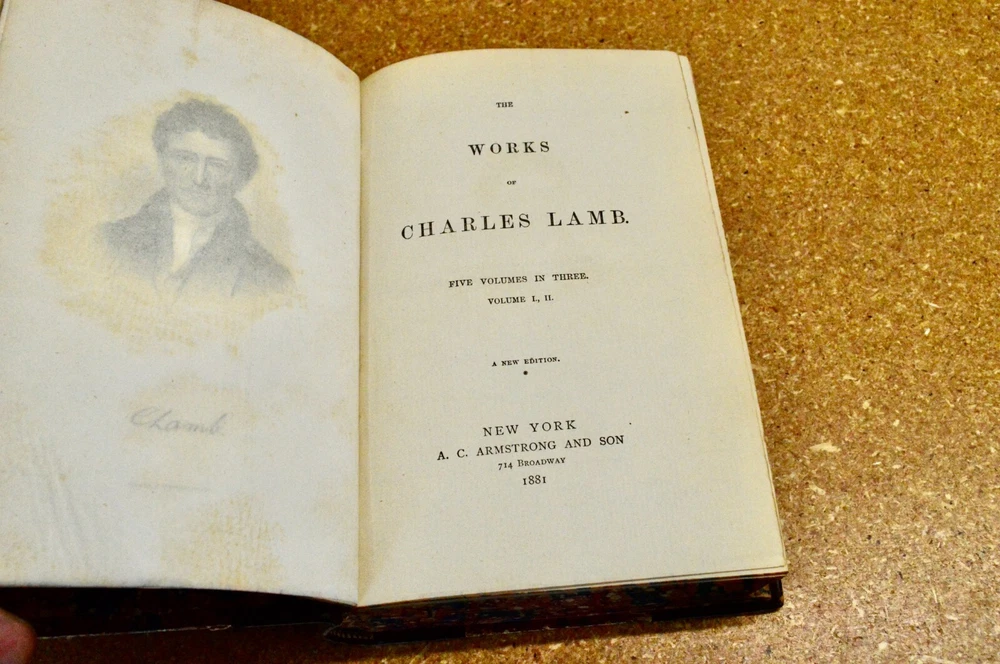 The Works of Charles Lamb. Five Volumes in Three Books. Published 1881 by A.C. Armstrong, New York. The Letters, Essays, Poems Correspondence and Other Works of Charles Lamb with a Sketch of his Life by Sir Thomas Noon Talfourd, D.C.I - One of his Executors with frontispiece portrait engraved by Finden in Volume 1. Handsome brown 1/4 leatherbound, with nice marble boards and marbled page edges. Pages are tight, and unmarred - leather is lightly cracked and there are expected wear marks in corners and edges. 3 book set dimensions are approx 8.75"H x 6."D x 9"W. See photos for details. A VG Collectable set. These antique leather books are a must-have for any collector or lover of vintage decor. The set consists of a foot of beautifully bound leather books, perfect for displaying on a bookshelf or coffee table. The unique binding style of the books adds an extra touch of elegance to any room. Each book in the set is crafted with the highest quality leather, ensuring durability and longevity. The intricate details and unique design of each book make this set a true treasure for any antique book enthusiast. Whether you're looking to add to your collection or simply looking for a stunning piece of decor, this antique leather book set is sure to impress. At Rarified Books we have cultivated sources for antique books over our many years in business. Our carefully curated sets of high-quality books offer a diverse range of literature, history, philosophy, and the arts, meticulously selected to enrich any interior. With publication dates spanning from 18 00 to 1920, each book in our collection is a stunning testament to a bygone era, showcasing unparalleled craftsmanship and an abundance of character. NB: Books are non-returnable, but we will be glad to send you more detailed photos before shipping. Please message us before purchase. ~~~~~~~~~~~~~~~~The Fine Print~~~~~~~~~~~~~~~~: At Rarified Books, we take pride in offering items of extraordinary quality, value and condition. We offer the finest in modern leather-bound books and more. Books are sourced from a wide variety of sources, and are carefully inspected. Other items are equally carefully sourced ... check out our other listings and see! All descriptions are to the best of our knowledge. Sales are made as-is and no warranty is offered as to authenticity or provenance. Title passes to the buyer upon shipment. All sales are final. Sales tax may apply which is collected automatically by eBay. Returns are not accepted except in rare circumstances upon agreement. Shipping is the responsibility of the buyer unless otherwise noted or agreed. Books are professionally wrapped and protected in bubble wrapping for shipping, with additional cushioning void filler in an appropriately sized carton or padded envelope. Most books will be shipped via USPS Media Mail with tracking or FedEx Home Delivery. International Shipping through eBay's Global Shipping Program only. International buyers are responsible for all local customs fees, taxes, and duties. These charges are not included in our shipping costs. We also buy books and are always open to purchasing excellent condition books from Easton Press, Franklin Library, Folio Society and similar as well as other rare and collectible books. See our website www.modernleatherbooks.com and let us know what you have. Thank you for considering our listing!