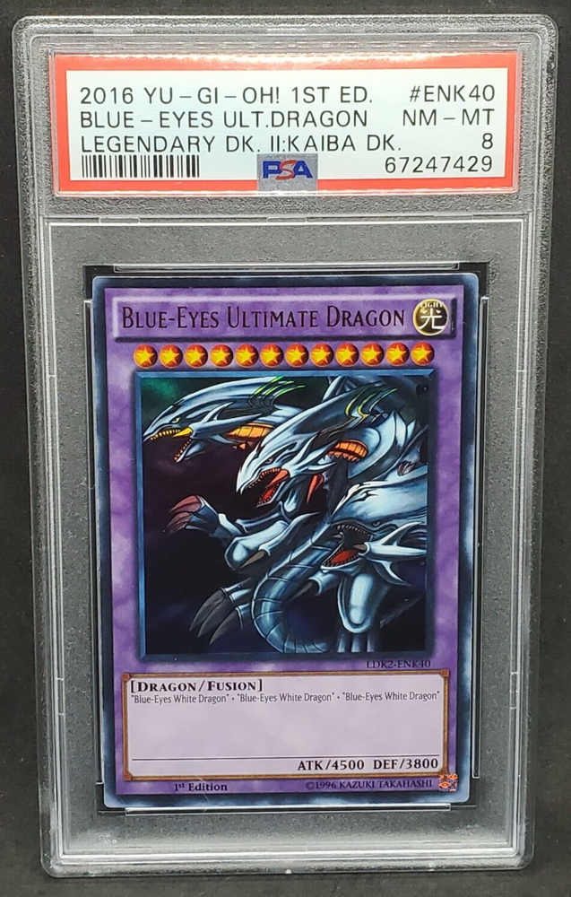 This Ultra Rare 1st Edition Blue-Eyes Ultimate Dragon is a must-have for any serious Yu-Gi-Oh! collector or duelist. The iconic artwork and powerful in-game presence make it a standout piece, while its rarity ensures long-term value. A true gem for fans of the classic series!