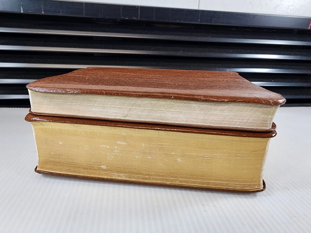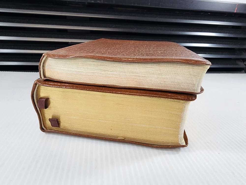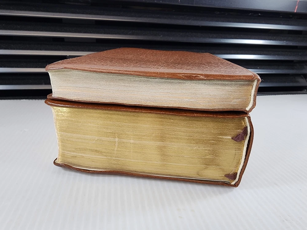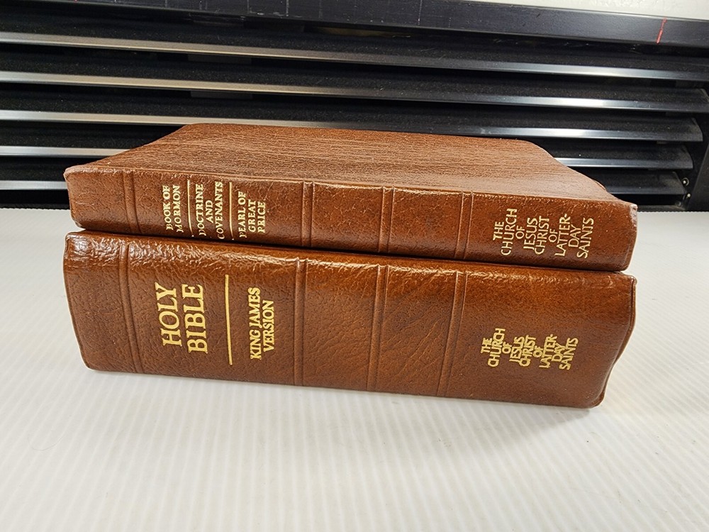 This is a beautiful set of leather-bound books that includes the Holy Bible and the Book of Mormon. The books are published by Books and are 7 inches by 5 inches in size. They are in excellent condition with no marks or writing. The set comes with a carrying case from the 1970s. The books are written in English and are nonfiction. The set is perfect for anyone interested in religion and spirituality, especially those who are interested in Mormonism.
