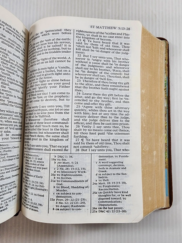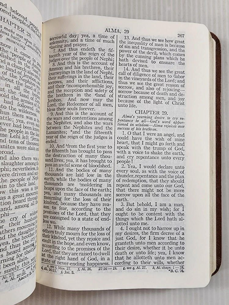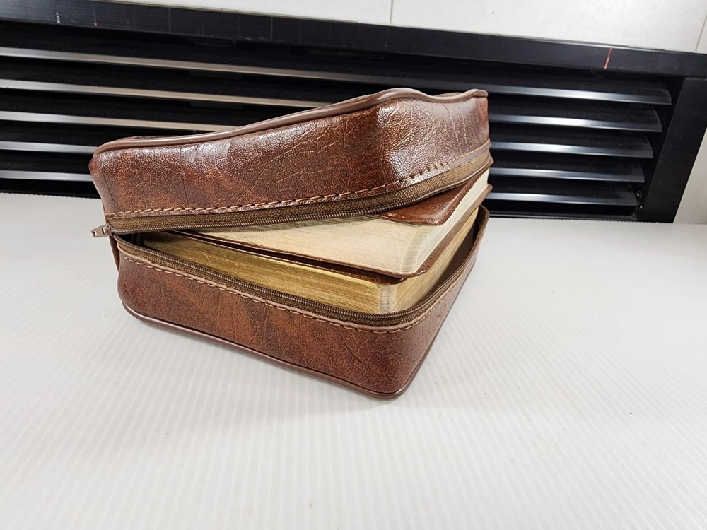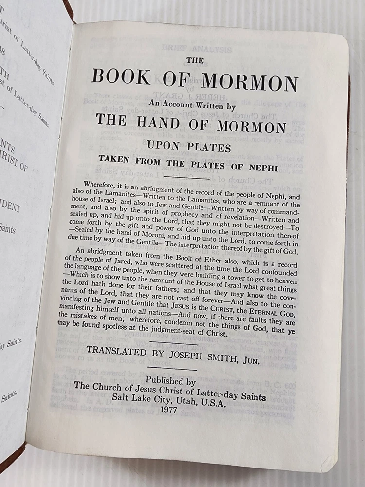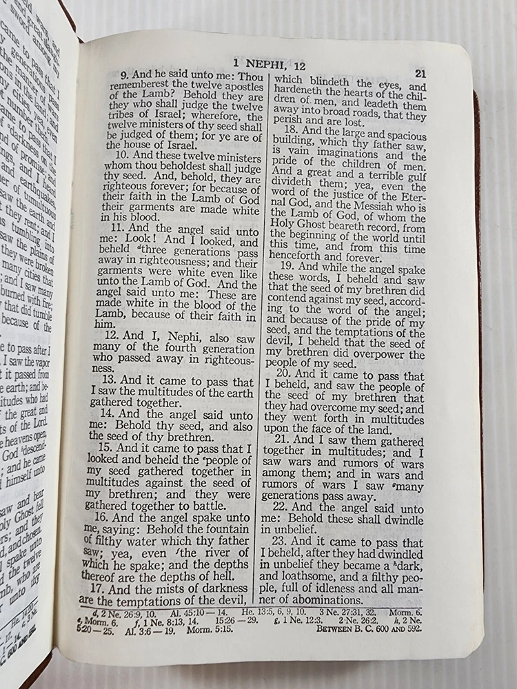 This is a beautiful set of leather-bound books that includes the Holy Bible and the Book of Mormon. The books are published by Books and are 7 inches by 5 inches in size. They are in excellent condition with no marks or writing. The set comes with a carrying case from the 1970s. The books are written in English and are nonfiction. The set is perfect for anyone interested in religion and spirituality, especially those who are interested in Mormonism.