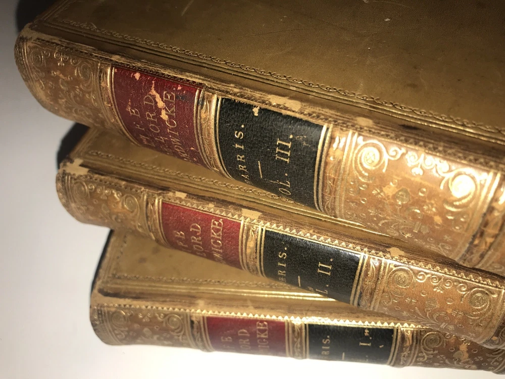 Extremely high quality set. Complete in 3 volumes. These are the original full calf bindings. Intricate gilt. Rag paper. A remarkable set. Printed in 1848. Provenance/association copy. T he copy of his grandson, gifted to him upon his leaving Eton college, per the inscription. See picture 4.