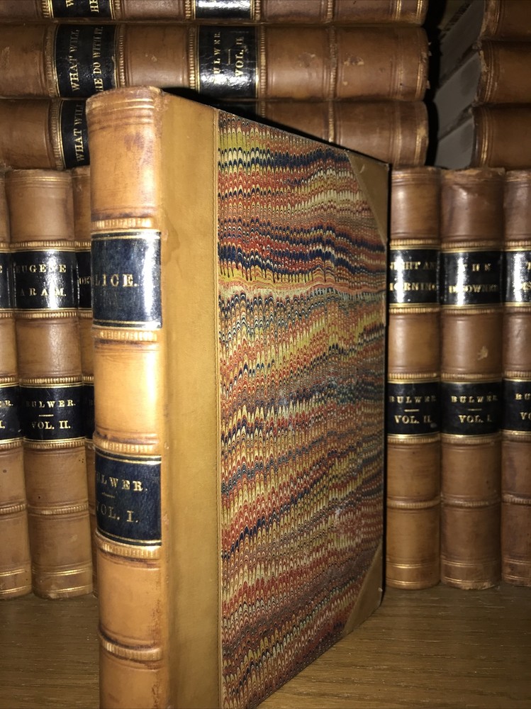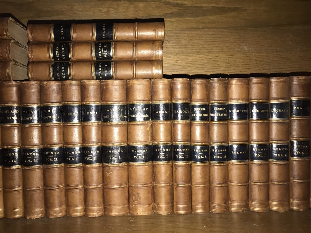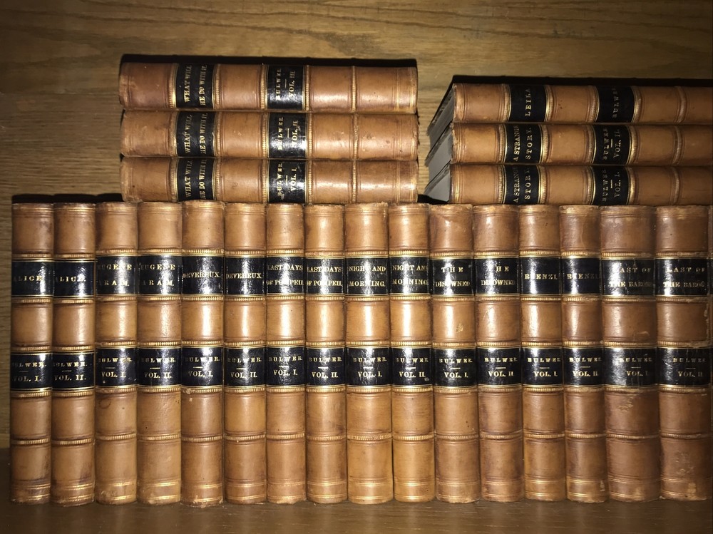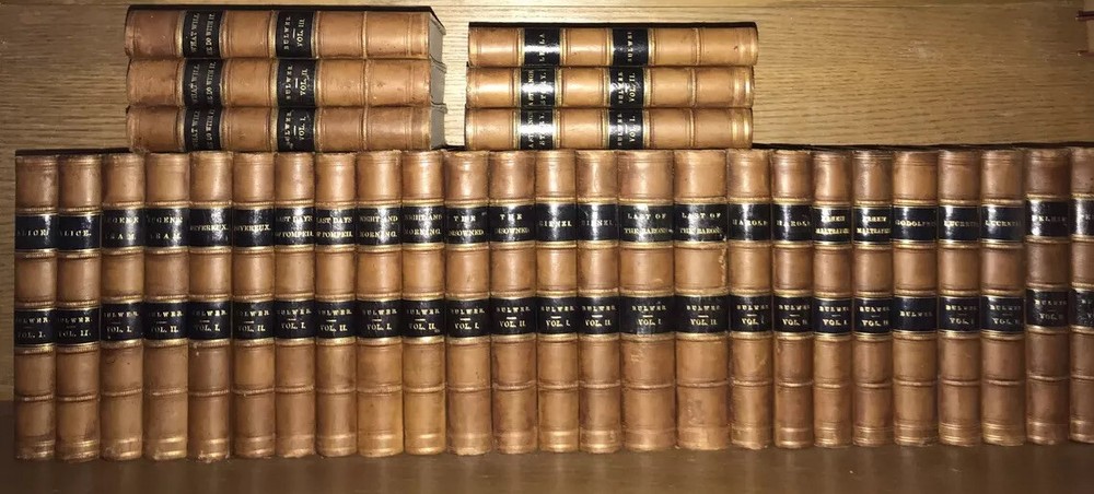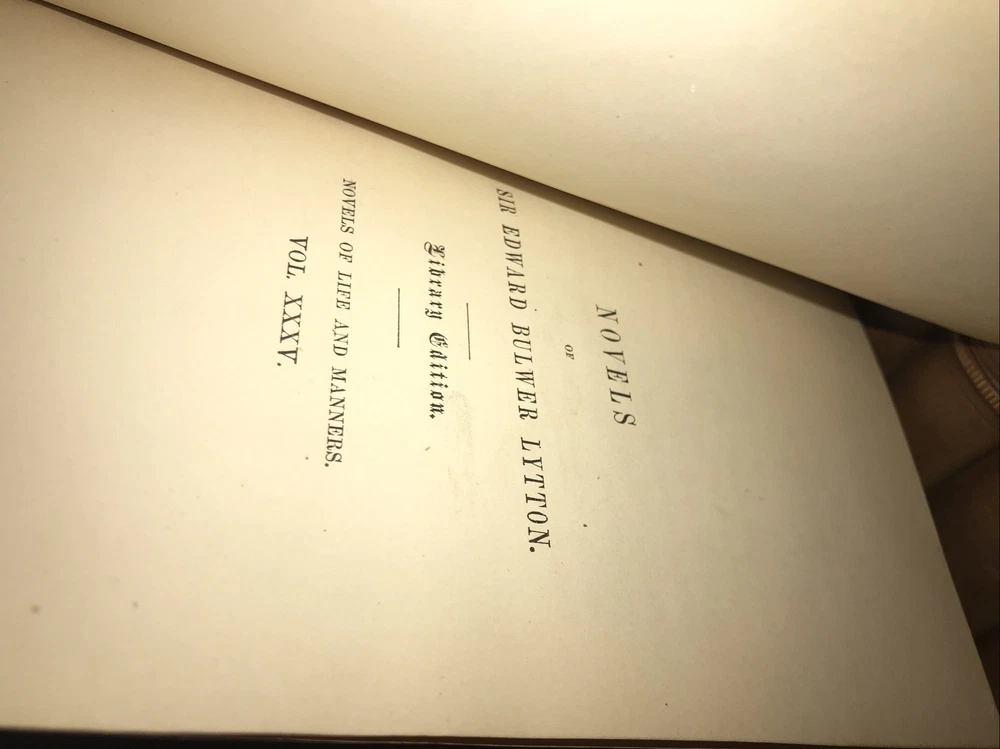 31 volumes. Printed in 1866. Some dates may vary. The bindings are original. Each title is complete by itself. These are high quality leather and they are original Victorian leather is remarkable condition. Set does not indicate completeness. The half titles indicate library edition with numbers in the mid 30s suggesting that the set is not complete. Old pencil pricing indicates these were for sale by the volume. Old bookplate and inscription. The highest quality bindings. The condition is remarkable. Romantic colorful titles for display. Printed in English. Leather supple hinges sound. Relatively light shelf wear. Set is over 150 years old. Priced to sell fast. Perhaps useful for decor decoration interior design movie prop etc. Roughly 7.5 inches tall. Almost 3 feet of shelf space. Set is worth over $1000. $40 per book is over $1200. Willing to sell at $750. Each volume will be well protected for shipping via Priority Mail. 5.6.21o
