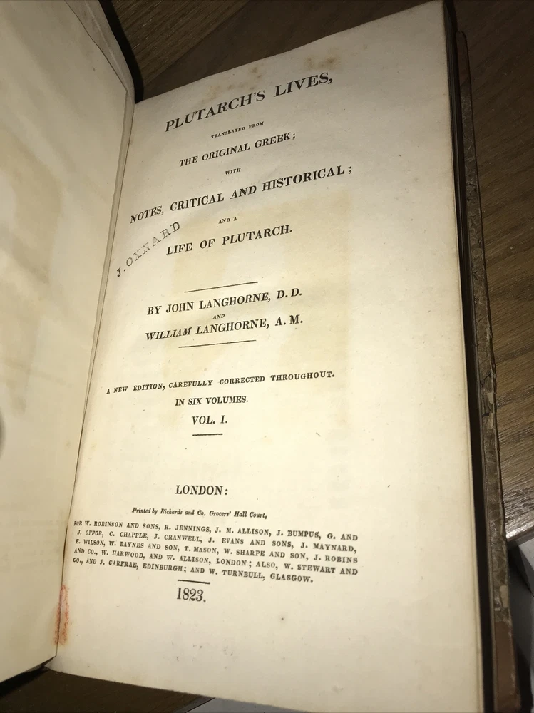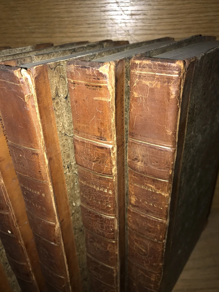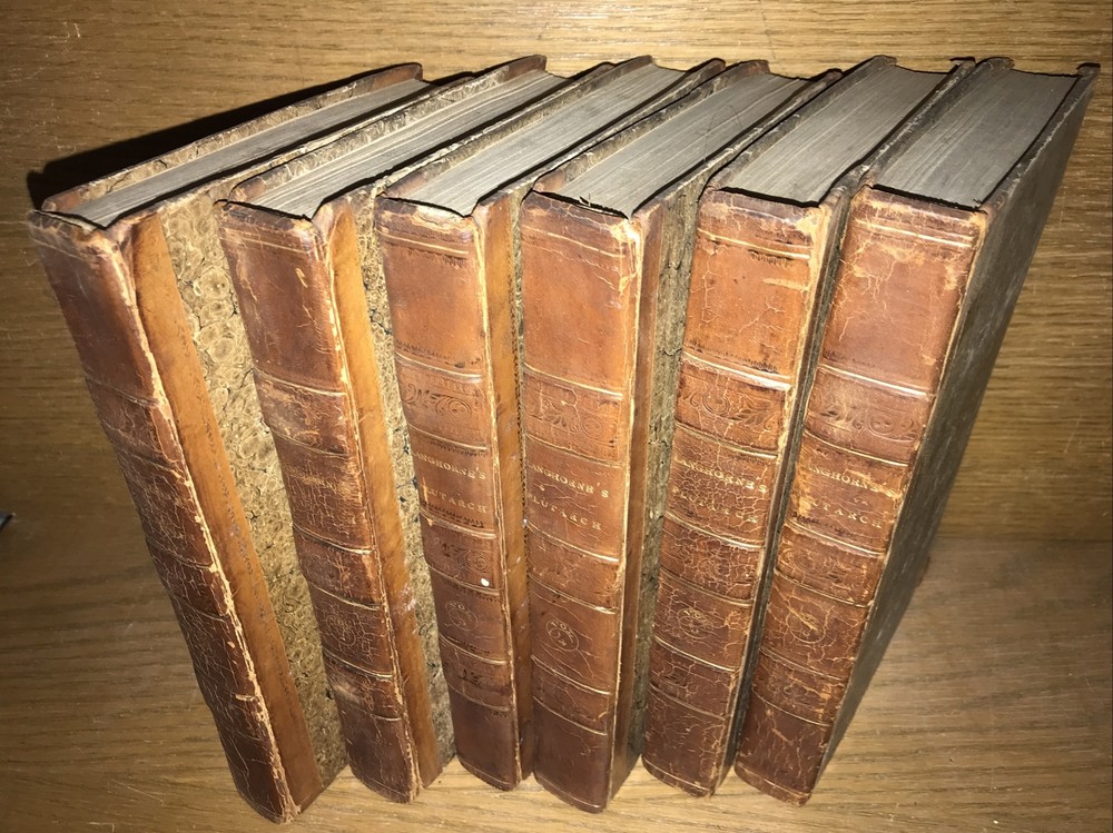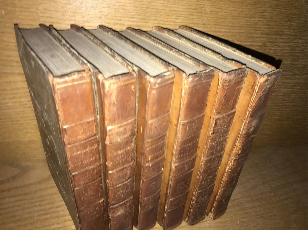 Complete in 6 volumes. Printed in 1823. This set is 200 years old. The bindings are original. Some starting. The paper is fresh and supple. Set has some bookplates and stamps, as shown in the pictures. This set will be well protected for shipping. Each book will be individually wrapped and well protected for shipping. 2023.04