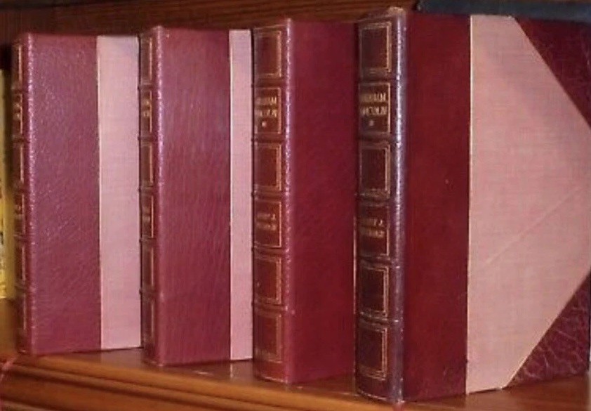 Complete in 4 volumes. In very good condition despite the age. The bindings are original. MANUSCRIPT EDITION. Printed in 1928. Complete in 4 Volumes. Volumes I, II and III are No. 101/1000 copies. Volume IV is No. 237/1000. The leather is a slightly darker and it is lightly rubbed with a light crease on the cloth on the front. Set is Sophisticated. Sophisticated means married from two sets. These are large volumes. Volume I contains a handwritten page of Beveridge's original manuscript. In highly giftable condition. This set will be well protected for shipping. Each book will be individually wrapped and well protected for shipping. 22.06