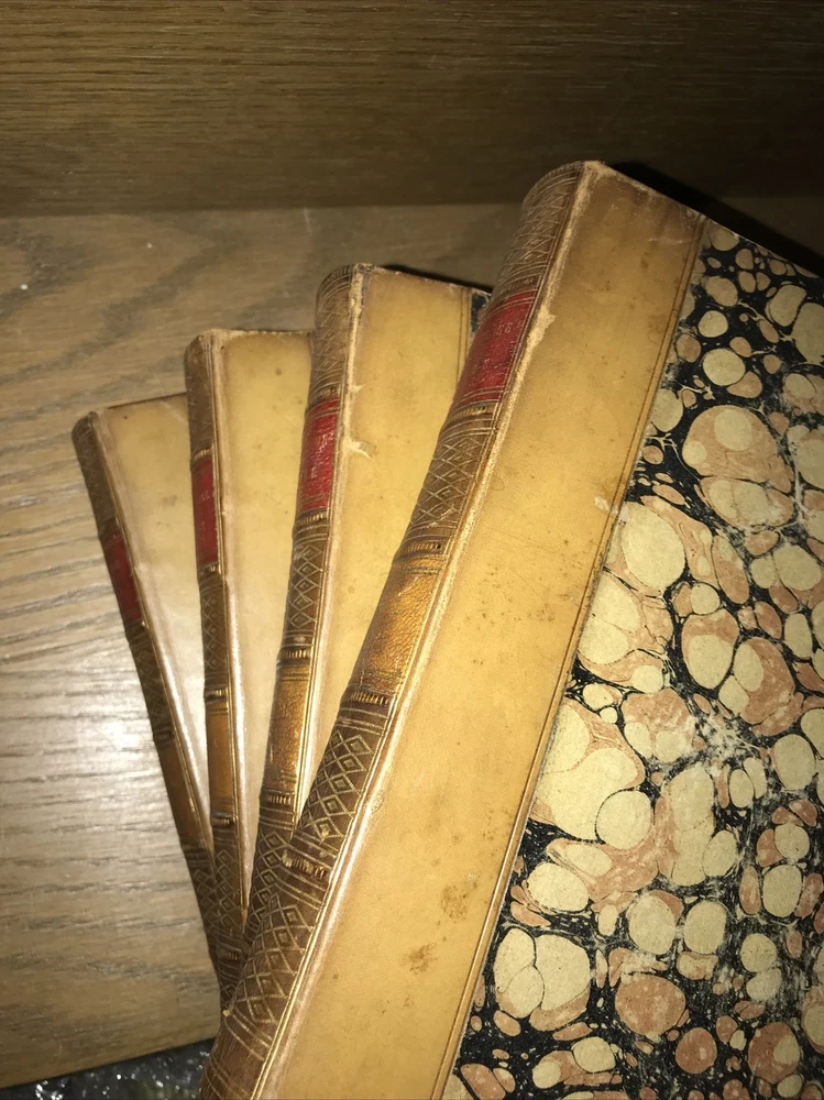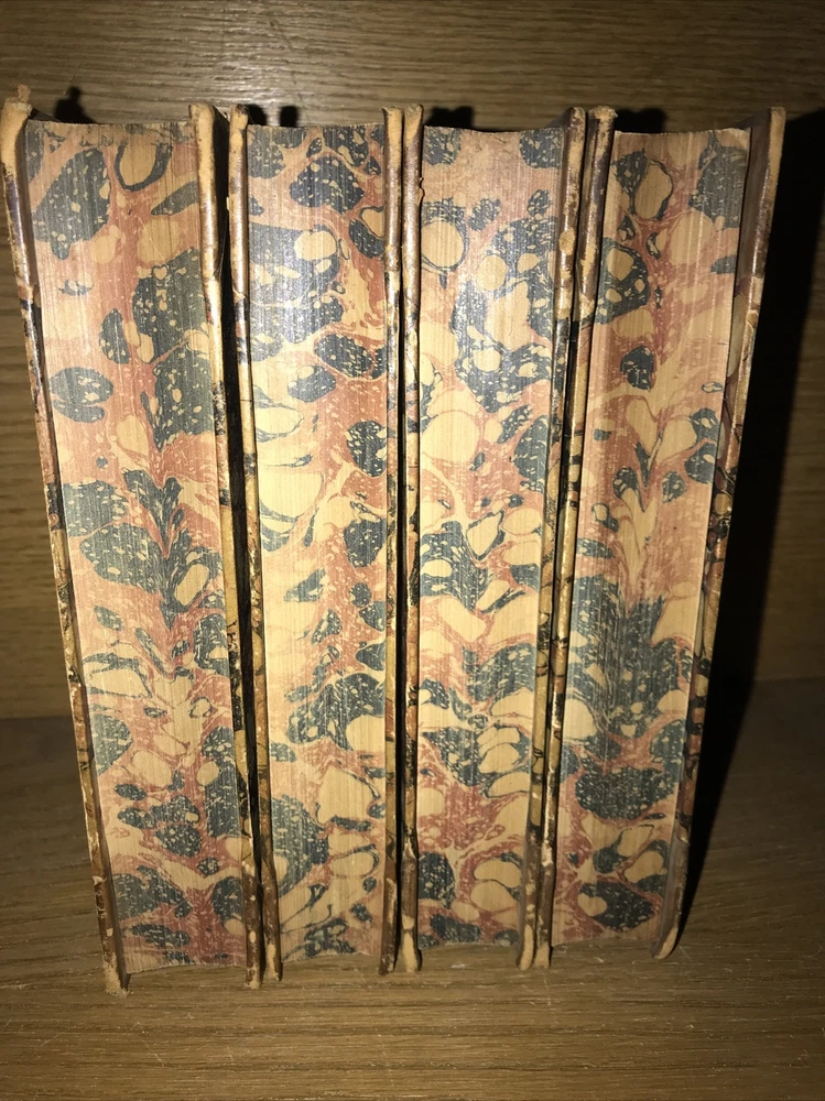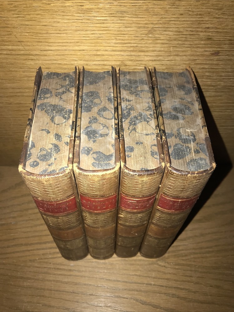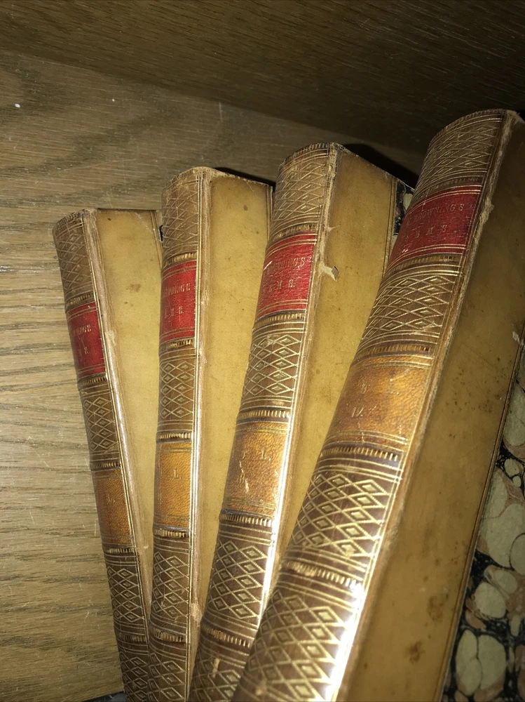 Complete in 4 volumes. An exceptional set. The bindings are original. Printed in 1863. During the Civil War. Intricately gilded spines. Elaborate gilded calf. This is a highly attractive set. High quality thick rag paper. Printed on quality paper. An exceptional set. Very supple and well preserved. All hinges sound. Set has some light extremity abrasion, scuffing to the spines. Some abrasion to some spine hubs. Generalized aging but still supple and fresh. Leather supple. Bindings are the original publishers’ bindings. This would make an excellent gift. These measure approximately 8 inches tall. This set will be well protected for shipping. 2023.11