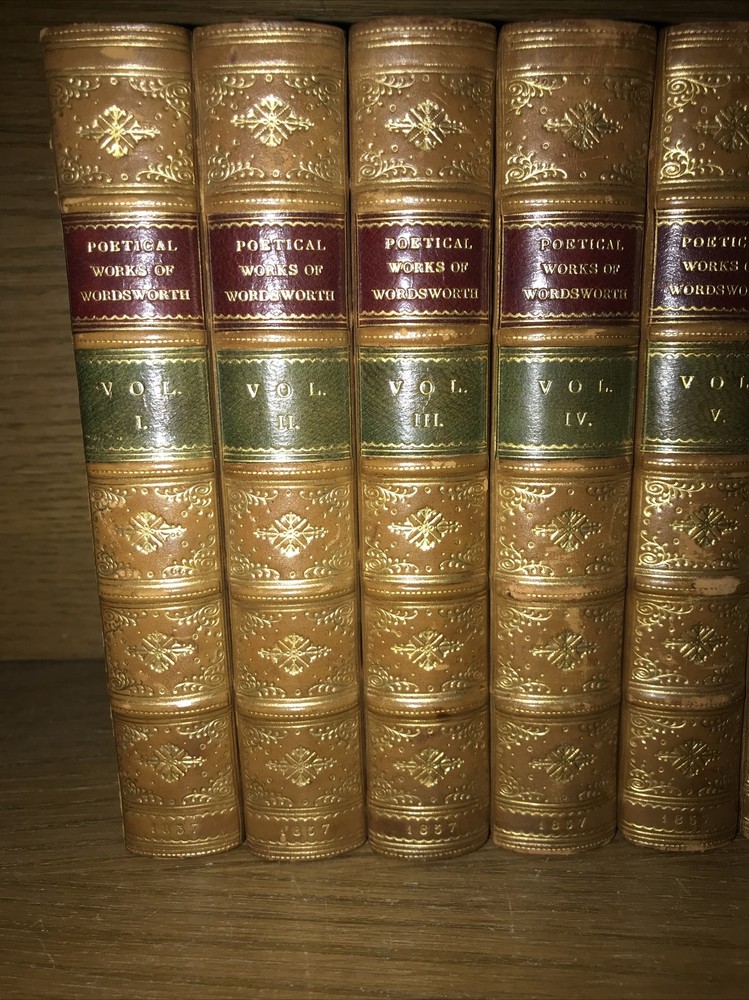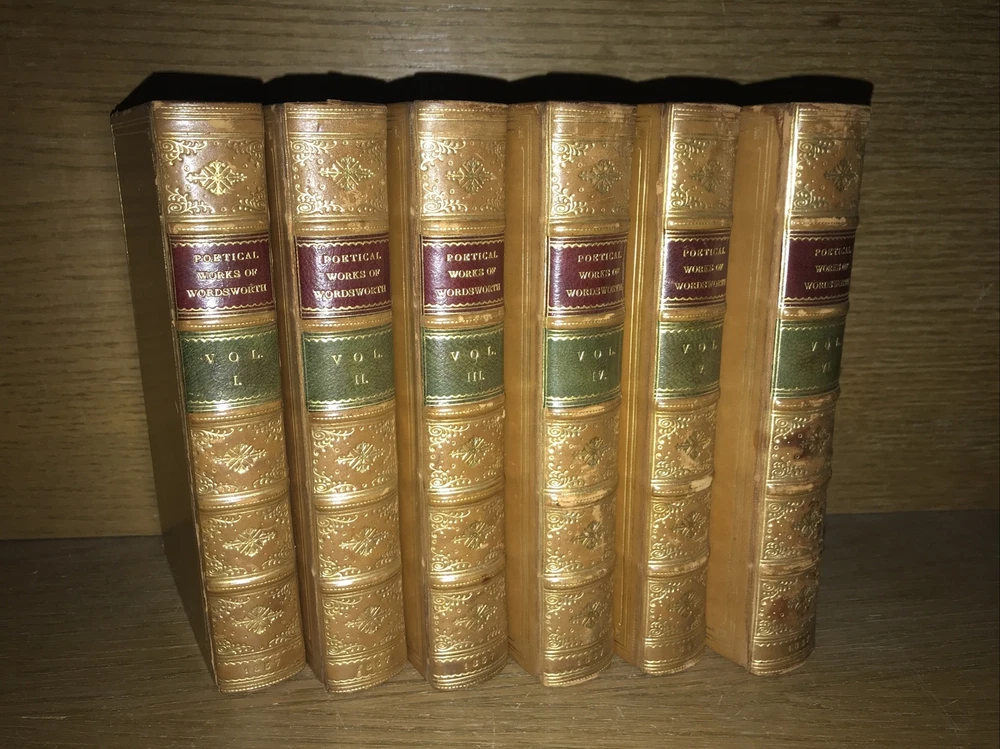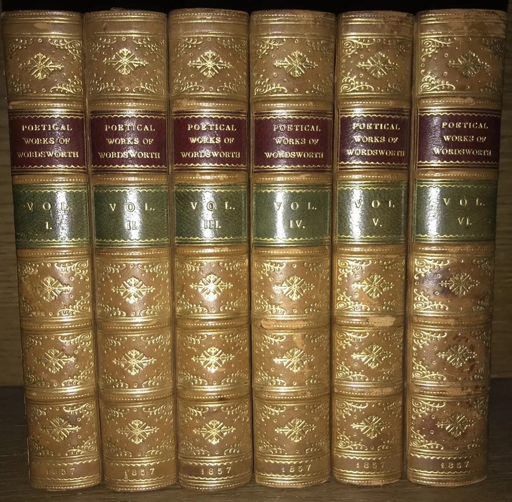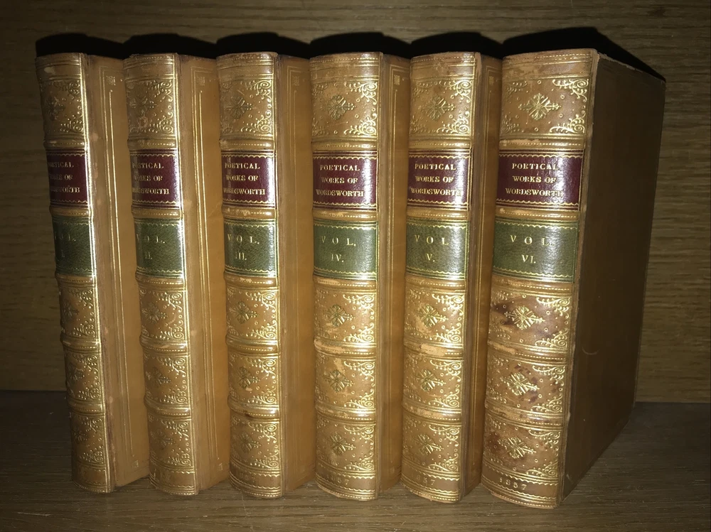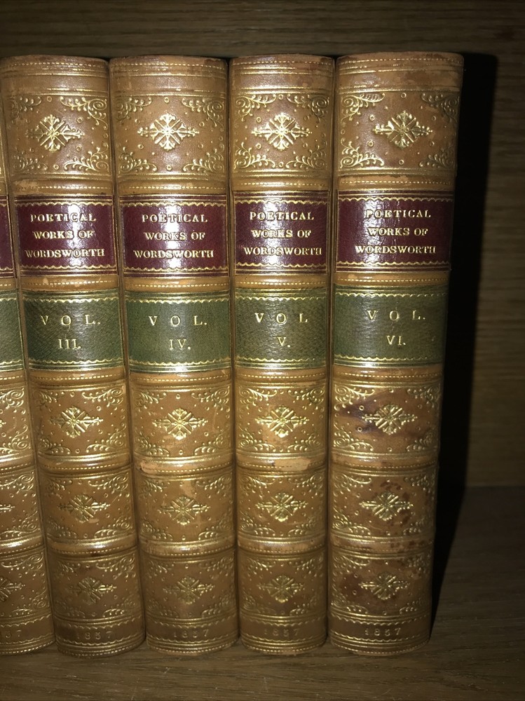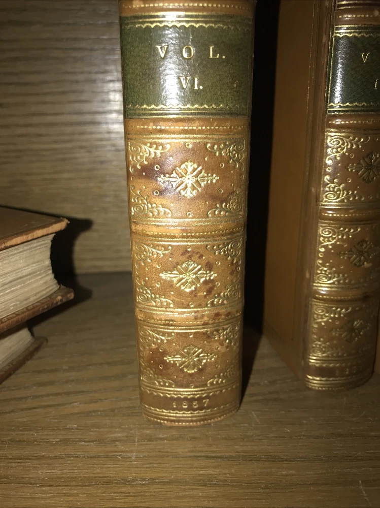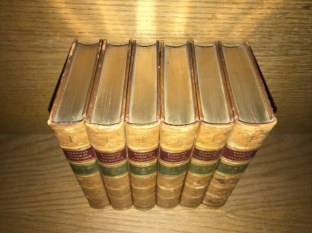 Complete in 6 volumes. Bound in full calf. Edges intricately gilded. Top edges gilded. Antiquarian bindings. Custom bound and signed by Birdsall Bindery. Printed on quality rag paper. An exceptional set. Very supple and well preserved. All hinges sound. This would make an excellent gift. These measure just under 7 inches tall. This set will be well protected for shipping. 2023.10