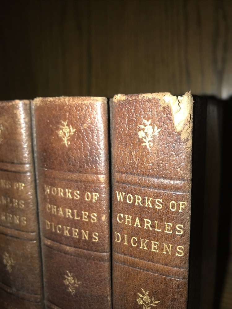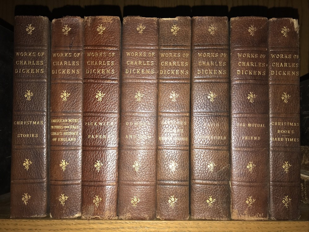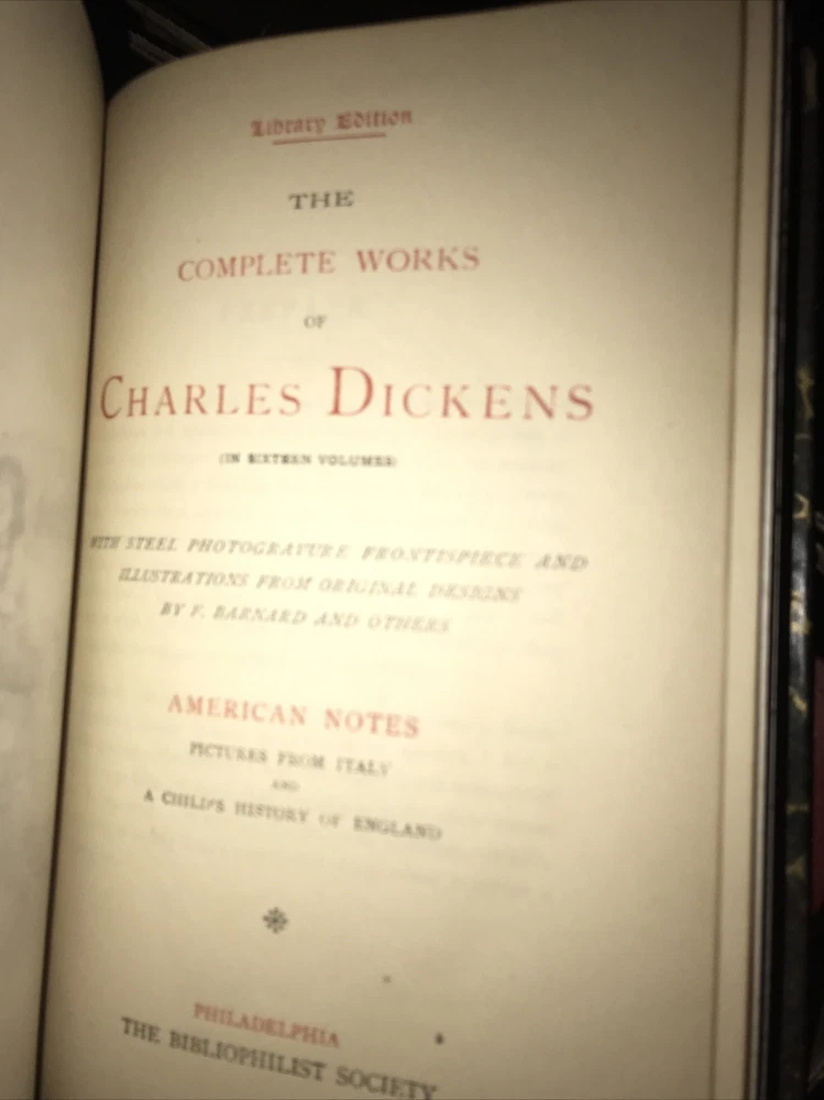 8 volumes only. Not complete. Title says 16 volumes, but only 8 books are included. This looks like a special edition for the Bibliophile Society. No date. Circa 1900. The leather is original. Set is well preserved. Leather supple. Hinges sound. Christmas has a spine chip. Some generalized shelf wear to the leather as seen in the pictures. Each book will be individually wrapped and well protected for shipping 3.26.21