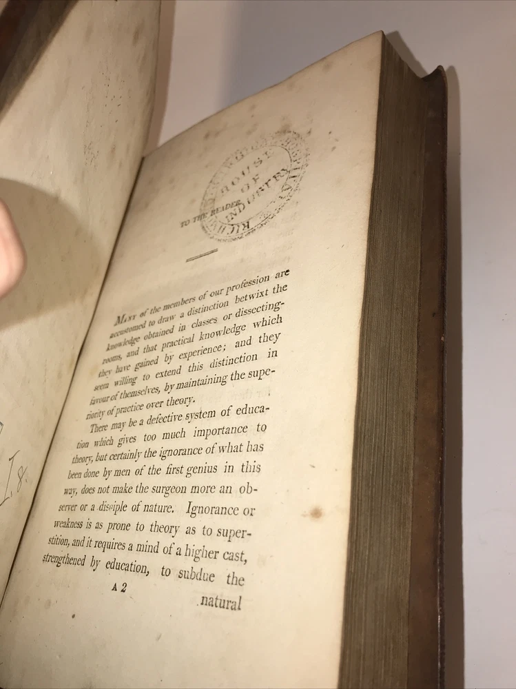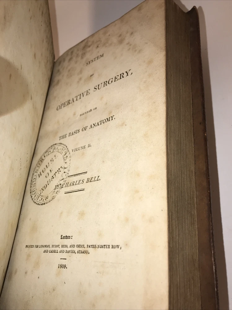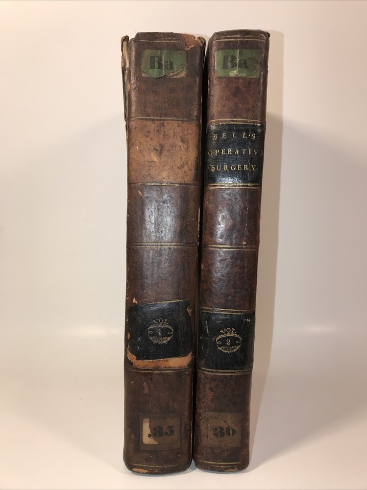 A SYSTEM OF OPERATIVE SURGERY, FOUNDED ON THE BASIS OF ANATOMY. C harles Bell. In the original bindings. Complete in 2 volumes. Printed in 1806-1809. Ex library and custom bound fo r Dublin Surgical H ospital House Of Industry . FIRST EDITION / FIRST PRINTING An exceptional set. In the highest grade leather. Extremely attractive full polished calf leather. All hinges starting but strong. Front hinge volume one feels reinforced. Printed on quality paper. Thick quality rag paper is exceptionally fresh and well preserved. The bindings are original. These are large books. These measure 9 inches tall. This will make an excellent gift. Each book will be individually wrapped and well protected for shipping via Priority Mail. Printed on rag paper. A pleasure to read. Internally very well preserved. Each book will be individually wrapped and well protected for shipping via Priority Mail. A System Of Operative Surgery, Founded On The Basis Of Anatomy. 2 Volume Set By Bell, Charles London: Longman, Hurst, Rees, and Orme; and Cadell and Davies. Good condition. Cover rubbed. Foxing throughout, offsetting and soiling to title page of Volume II. Ex Surgical Hospital Dublin Library. 1809. First Edition. Brown hardback leather cover. 240mm x 150mm (9" x 6"). xv, 448pp; xxiv, 385pp. Engraved plates [14 in Volume I, and 7 in Volume II], and line drawings. Volume II published in 1809.