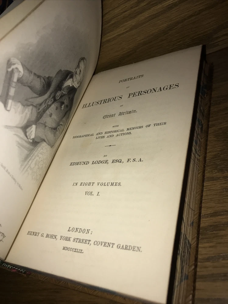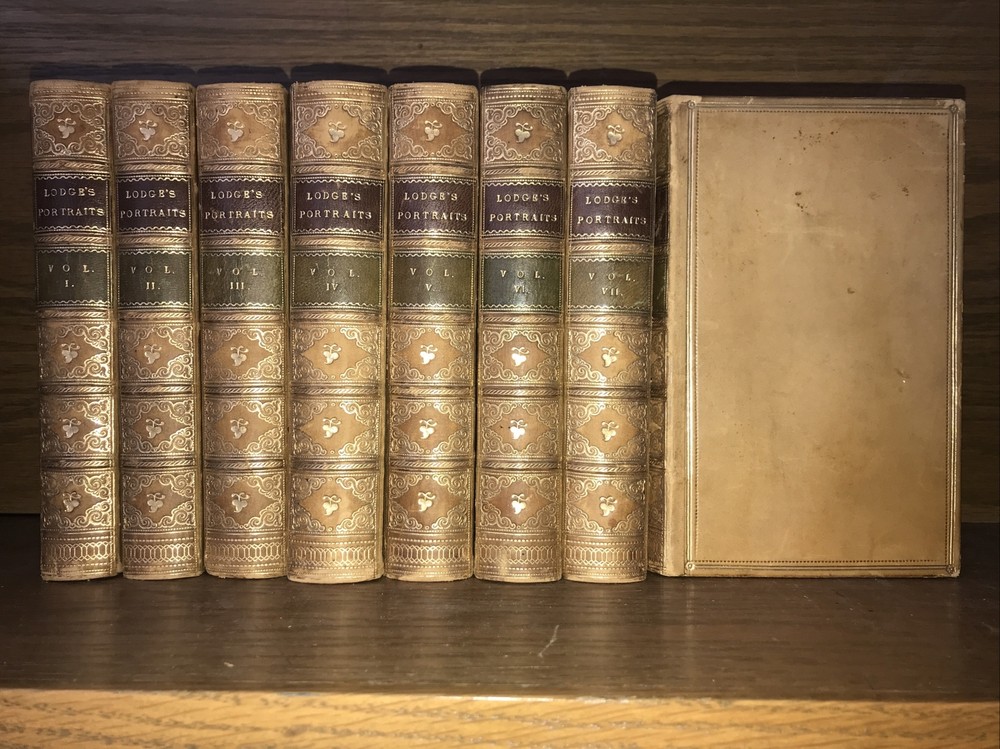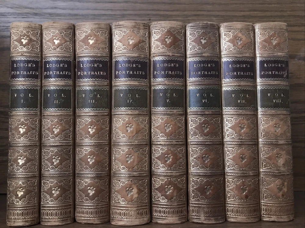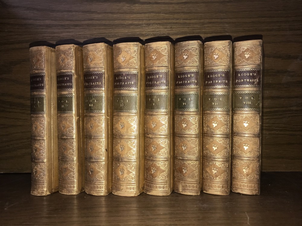 L odges Portraits. Complete in 8 volumes. Bound in the original Victorian full calf leather bindings. Printed in 1849. Extensively illustrated with plates. Quality rag paper. An exceptional display set. All hinges are sound. Set has generalized abrasions and scuffing. Leather supple. This is a high quality set. Printed on quality paper. Set is complete. Early name on blank end paper. Armorial bookplate. 7 percent niches tall. Each book will be individually wrapped and well protected for shipping via Priority Mail. 2022.02.17