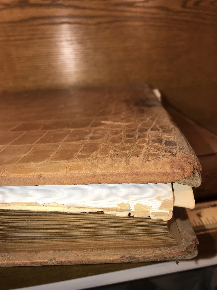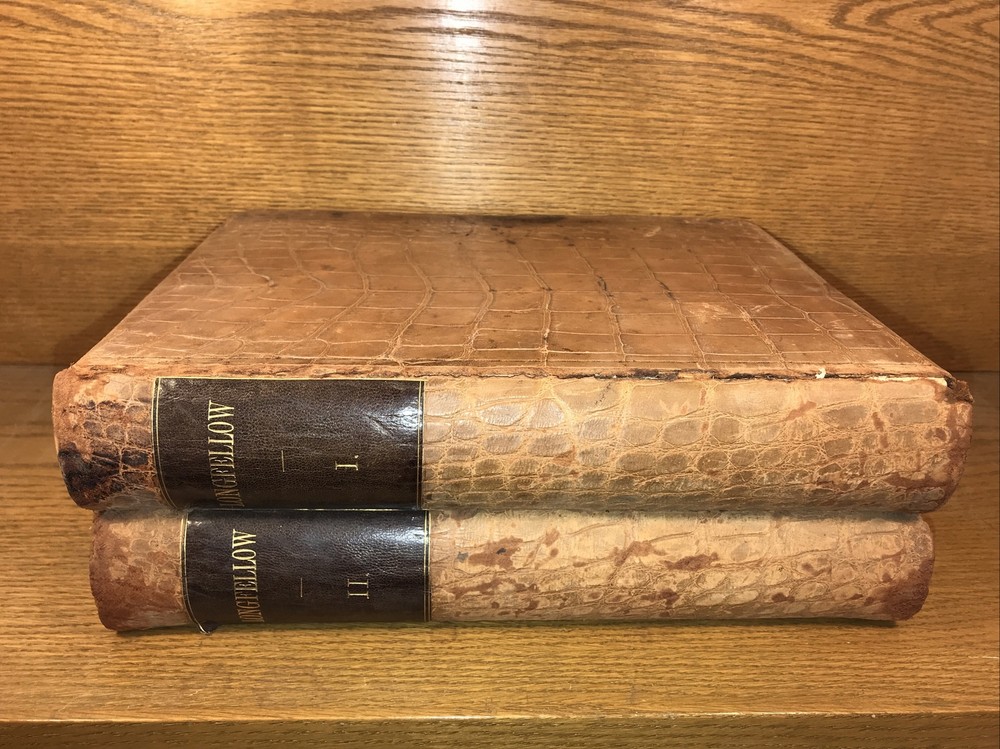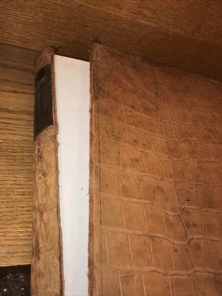 Two massive folios. Complete. Heavily illustrated with steel engraved plates. Cover of volume one cracked and partially detached. Cover volume two is detached as shown in picture 12. First few pages of volume one are detached. Detached. Faux alligator skin. Genuine leather. These are the original Victorian Era faux alligator leather bindings. The bindings are rare. Printed 1881. Pages detached. Cover detached. Please be ok with the condition. These are massive books. Over 12 inches tall. Incredibly heavy. Each book will be individually wrapped and well protected for shipping via Priority Mail.