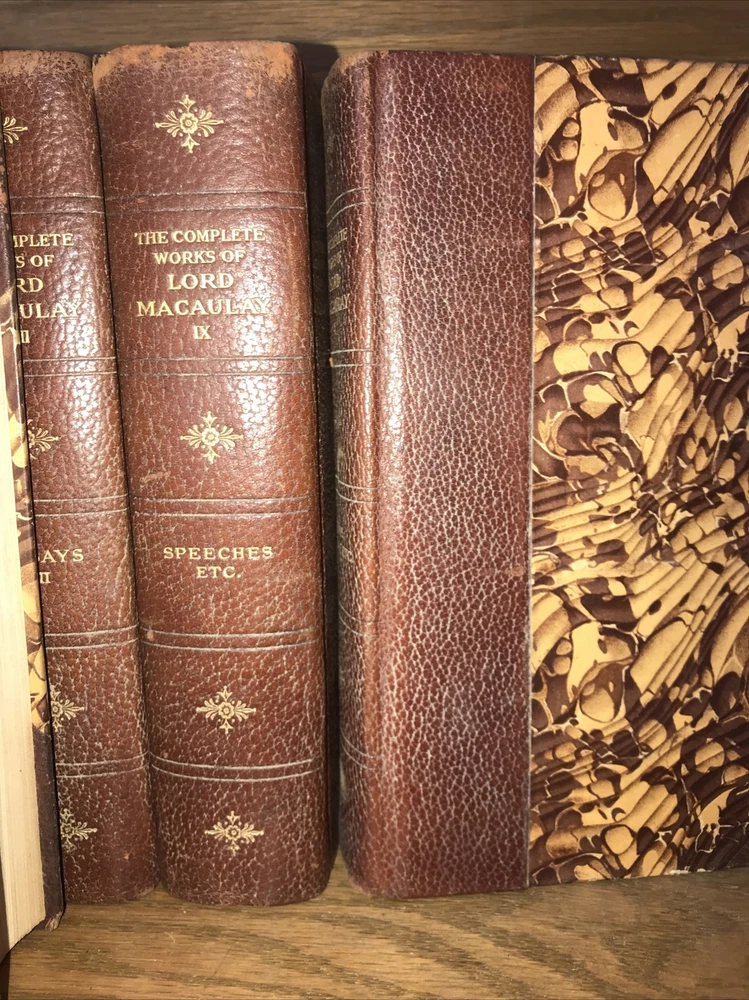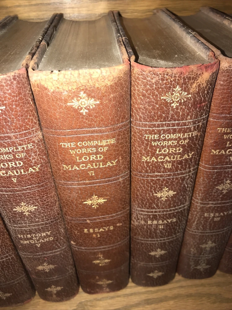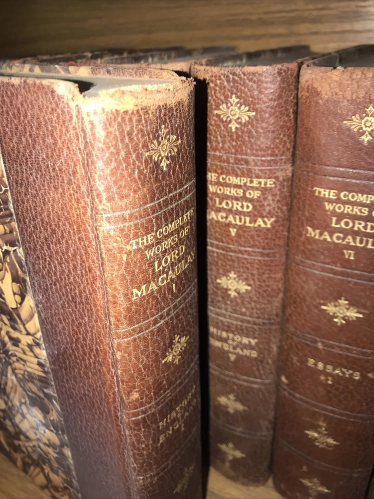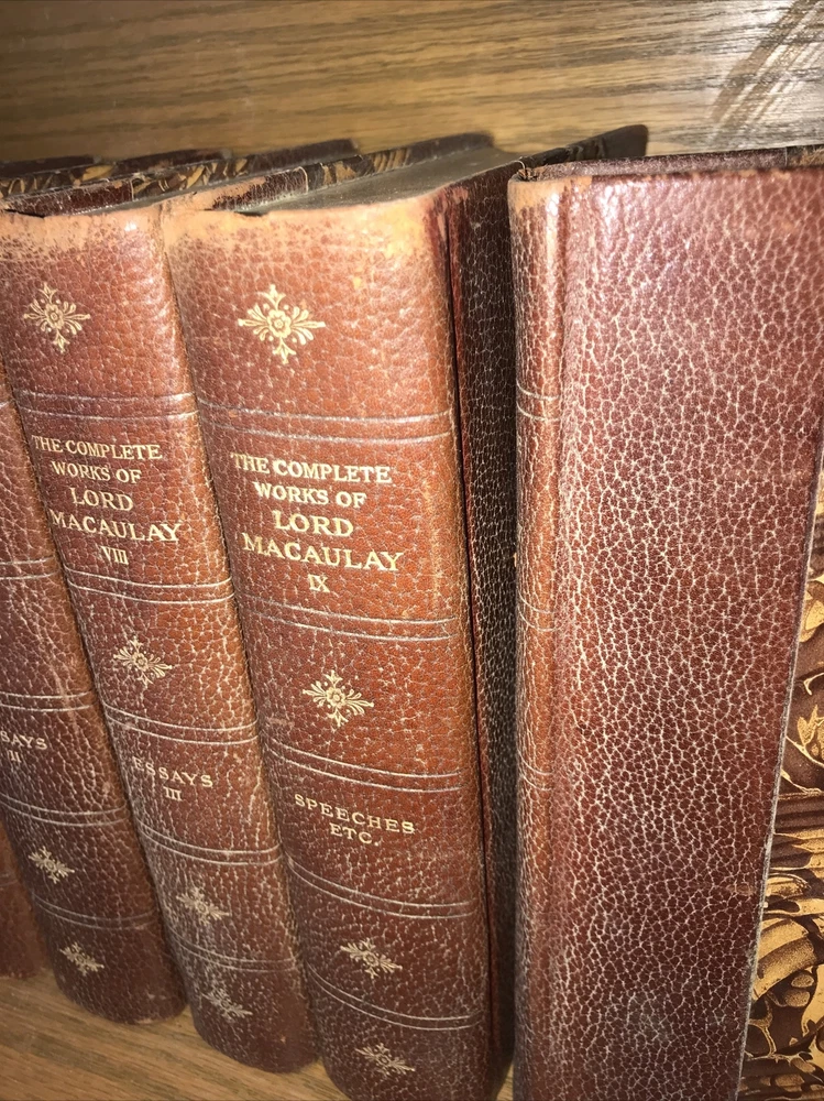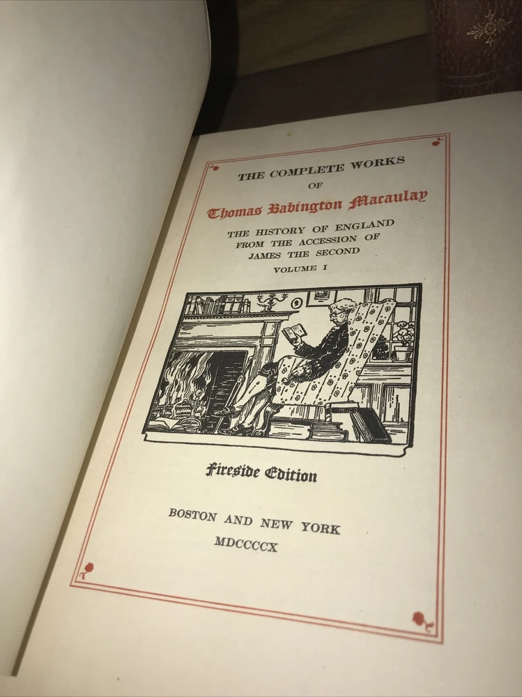 Complete in 10 volumes. Printed in 1910. The bindings are original. Fireside edition. High grade leather. Paper fresh. All hinges sound. Set only has light extremity abrasions. Some abrasions at the spine heads. I showed close up pictures of this. Leather supple. Large books measure 9 inches tall. Will be well protected for shipping. 2022.03.10