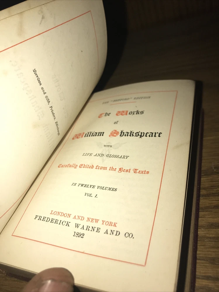 Complete in 12. Printed 1892. These are smaller books. Approximately just over 4.5 inches tall. Full leather. The bindings are original. All edges cased in gilt. Light shelf wear as shown. Minor extremity chip base of one volume. Early inscription. Quality paper. Leather still supple despite the age. An endearing set. Highly giftable. Printed in English. Each book will be individually wrapped and well protected for shipping via Priority Mail. 4.12.21