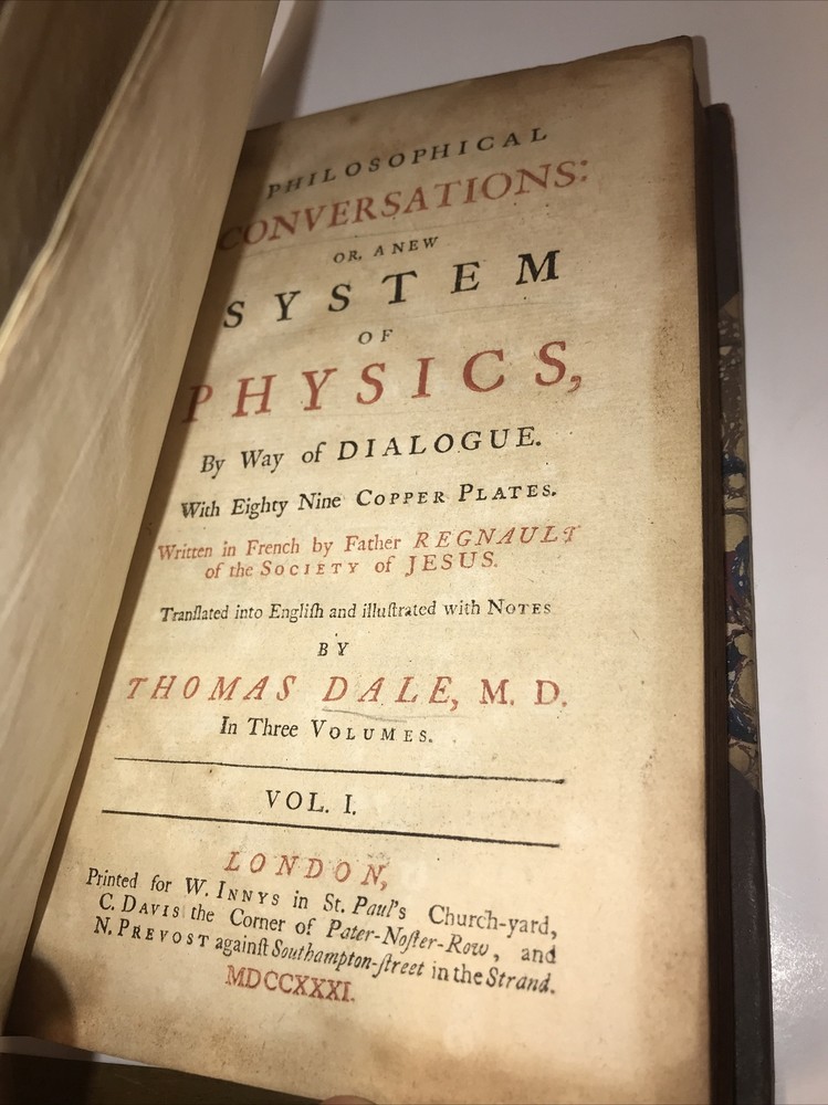 First English edition. Lacking volume two. Volumes 1 and 3 only. A rare set but missing a volume. Worth $800-$1500 complete. Rebound in the 19th or early 20th century. Hinges cracked but strongly attached. Extensively illustrated with copper plates. Red and black title page. Quality rag paper. Generalized shelf and usage wear. Hinges starting but held strong. Each book will be individually wrapped and well protected for shipping via Priority Mail.
