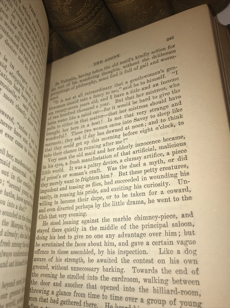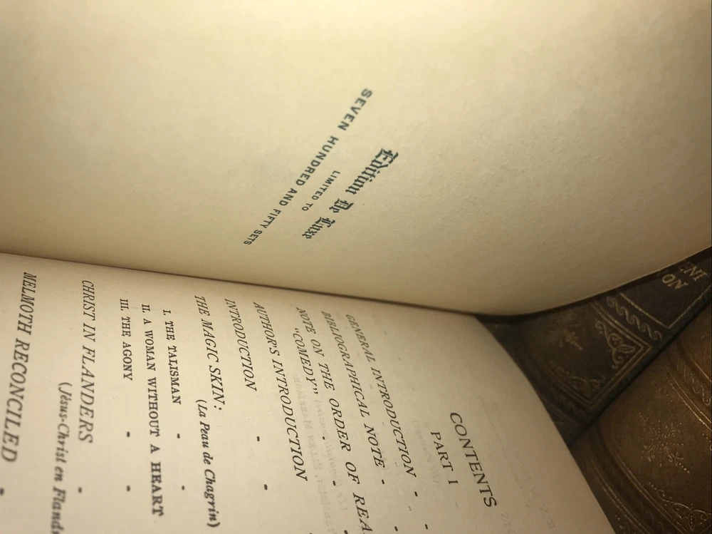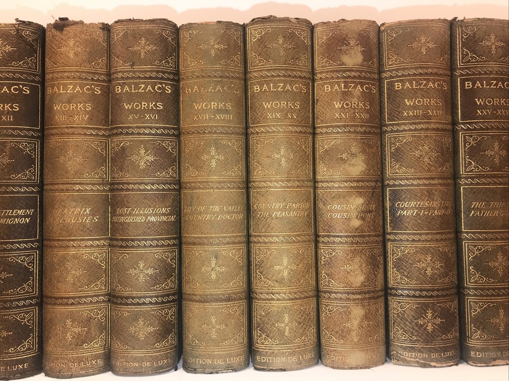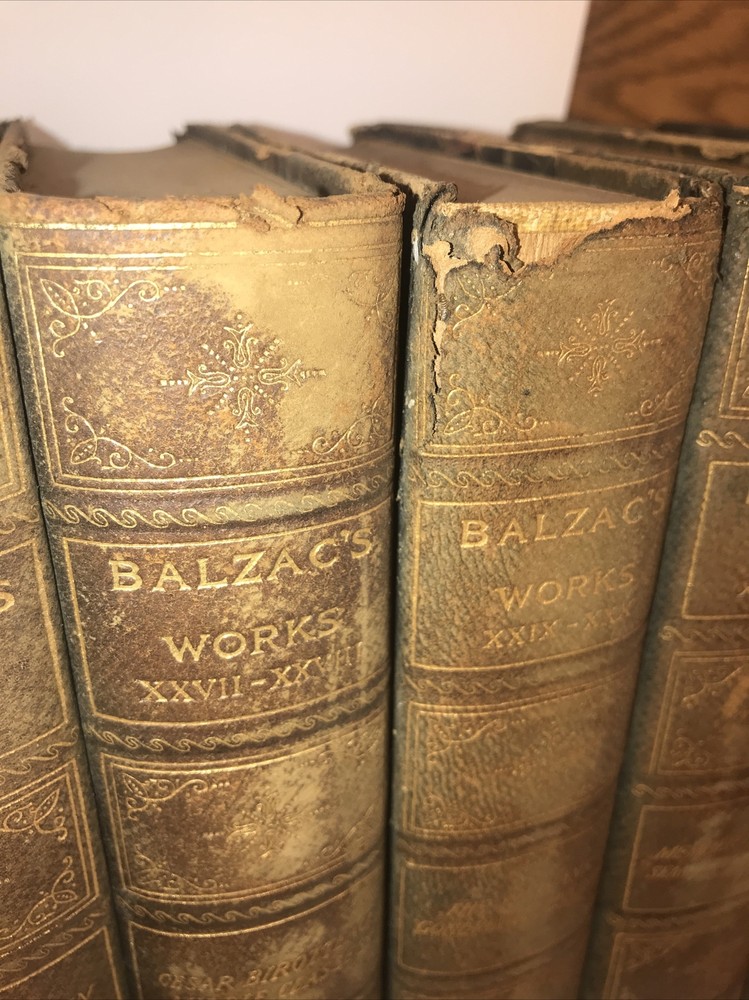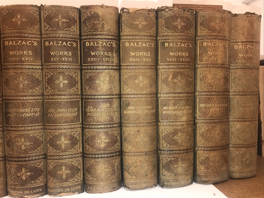 THE COMPLETE WORKS OF HONORE DE BALZAC!PRINTED IN ENGLISH . Usually complete in 18 volumes, set is missing one volu me. 17 volumes out of 18. Edition De Luxe.Limited to 1/750 sets ever made. ILLUSTRATED with Full Page plates. The Complete Works of HONORE DE BALZAC. Complete in 36 volumes, bound into 18 books, which is standard for Balzac's Complete Works.There are only 17 out of 18 books to this set, and this set is n ot complete. Bound in ornately gilded leather bindings! Marbled boards and end-papers. Top edges are gilded! Ornate gilded spine! Wide margins. Printed in English. These measure 8 1/8 inches tall. This is an extremely heavy set; hence the cost of postage. Edition De Luxe limited to just 750 sets ever produced! ILLUSTRATED with Full Page plates! Chesterfield Society, NY; There is no printed date, printed circa 1895. VERY GOOD Condition overall with shelf wear as visible in the pictures. . Hinges are strongly attached and sound, some rubbing/abrasion. Some general external rubbing/wear, as shown; signs of usage. Please look at the pictures, there is external wear, a few small chips, as shown. Very Good, near mint interior. Bright, clean, crisp. About free of foxing. Quality rag style paper. Some light general signs of usage. Very tightly bound. No writing or signs of previous ownership aside from previous owners stamp on pastedown. This is an extremely nice rustic set A beautiful collection of Honore de Balzac's complete works. Printed in English Titles: Lily of the Valley Country Doctor Daughter of Eve // A Woman of Thirty The Thirteen Father Goriot Sign of the Cat and Racket // Honorine Cesar Birotteau // Middle Classes Scenes from A Courtesan's Life Catherine De Medici // Gambara // Seraphita Member For Arcis // The Steamy Side of History Beatrix // Jealousies of A Country Town Country Parson // The Peasantry Eugenie Grandet // Ursule Mirouet The Chouans // A Passion in the Desert Cousine Betty // Cousin Pons The Phsyiology of Marriage // Comedie Humaine A Marriage Settlement // Modest Mignon The Magic Skin // The Quest of the Absolute Dramas // Vautrin Lost Illusions // A Distinguished Provincial at Paris COMPLETE in 18-volumes. This would make an excellent gift and/or addition to any fine library. In addition to their shelf presence, Rare & Antiquarian Books make a great investment. I always pack very securely to ensure safe arrival at your doorstep. All books are individually wrapped and professionally padded. _______________________~~~~~~~~~~~~~~~~~~~~~ This would make an excellent gift and/or addition to any library. Antiquarian books make a great investment, are only going up in value, and are sure to increase the aura of any room or office! I will pack very securely to ensure safe arrival at your doorstep. All books are individually wrapped and professionally padded. We double wrap and will leave plenty of space between this purchase and the walls of the box. We fill this space with plenty of padding.Customer Service is important to me. A full refund is offered, if the item is not as described. My goal is complete customer satisfaction. Please contact me with any questions. This set should ship out within 48 hours, and each volume will be individually wrapped and protected for shipping. #1868ap Honoré de BalzacFrom Wikipedia, the free encyclopedia"Balzac" redirects here. For other uses, see Balzac (disambiguation).Honoré de BalzacBornHonoré Balzac[1] 20 May 1799 Tours, Indre-et-Loire, FranceDied18 August 1850 (aged 51) Paris, FranceResting placePère Lachaise Cemetery, ParisOccupationWriter, critic, journalist, printerNationalityFrenchAlma materUniversity of ParisGenreNovel, dramaturgy, essayLiterary movementRealismNotable works • La Comédie humaineEugénie GrandetLa Peau de chagrinLe Père GoriotColonel ChabertLa RabouilleuseLe Lys dans la valléeIllusions perduesSplendeurs et misères des courtisanes Notable awards – Légion d'honneurYears active1829–1850SpouseEwelina Hańska (m. 1850) ( née Contessa Rzewuska)Signature Honoré de Balzac (/ˈbɔːlzæk, ˈbæl-/;[2] French: [ɔ.nɔ.ʁe d(ə) bal.zak], born Honoré Balzac ,[1] 20 May 1799 – 18 August 1850) was a French novelist and playwright. The novel sequence La Comédie Humaine , which presents a panorama of post-Napoleonic French life, is generally viewed as his magnum opus . Owing to his keen observation of detail and unfiltered representation of society, Balzac is regarded as one of the founders of realism in European literature.[3] He is renowned for his multi-faceted characters; even his lesser characters are complex, morally ambiguous and fully human. Inanimate objects are imbued with character as well; the city of Paris, a backdrop for much of his writing, takes on many human qualities. His writing influenced many famous writers, including the novelists Émile Zola, Charles Dickens, Gustave Flaubert, Jack Kerouac and Henry James, as well as important philosophers such as Friedrich Engels. Many of Balzac's works have been made into films, and they continue to inspire other writers. An enthusiastic reader and independent thinker as a child, Balzac had trouble adapting to the teaching style of his grammar school. His willful nature caused trouble throughout his life and frustrated his ambitions to succeed in the world of business. When he finished school, Balzac was apprenticed in a law office, but he turned his back on the study of law after wearying of its inhumanity and banal routine. Before and during his career as a writer, he attempted to be a publisher, printer, businessman, critic, and politician; he failed in all of these efforts. La Comédie Humaine reflects his real-life difficulties, and includes scenes from his own experience. Balzac suffered from health problems throughout his life, possibly due to his intense writing schedule. His relationship with his family was often strained by financial and personal drama, and he lost more than one friend over critical reviews. In 1850, Balzac