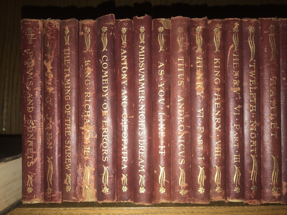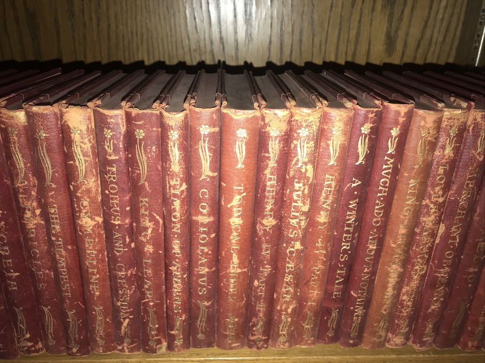 39 of 40 volumes. Leather. Dated 1901. Bindings are original. 6.75 inches tall. Extremity spine chips, extremity splits. All covers attached. Spine abrasions. Printed on quality paper and fresh and clean inside. Main condition issue is age and shelf wear and spine edge Chips and splits. The leather itself still feels supple. An attractive rustic set with a gilded floral motif. Each book will be individually wrapped and well protected for shipping 3.26.21