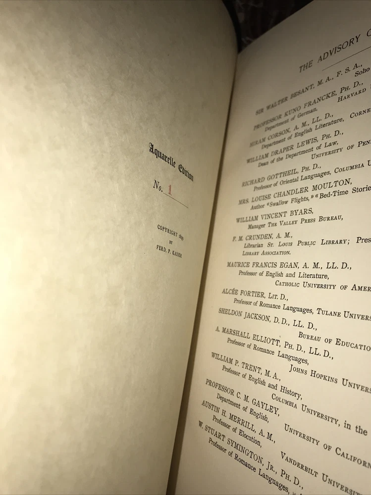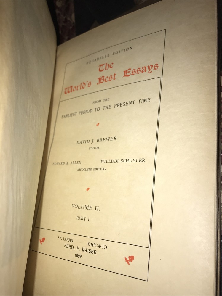 This set is not complete. Set #1. This is set number one out of 100. Printed in 1899. These are extremely large books. Bound in the highest grade Morocco leather, printed on rag paper. Very good condition overall, except for volume VII which is beat up and cover cracked and chipped spine. Main issue is set only has 8 volumes. Not complete. Volume seven is damaged. More volumes are in a separate listing. I don’t think I have the whole set. These are the original leather bindings. Theleather is the highest grade Morocco leather. These are genuine leather. Extremely well preserved for being over 100 years old. Some minor external wear as shown in the pictures. A nice antiquarian set worthy of gifting. Only issue is that the set isn’t complete. If complete this set would sell for over $1000, and would likely sell even higher with this being set #1. Very good condition overall, except for volume VII which is beat up and cover cracked and chipped spine. Not complete. Not complete. Each book will be individually wrapped and well protected for shipping via Priority Mail. 2.28.21O