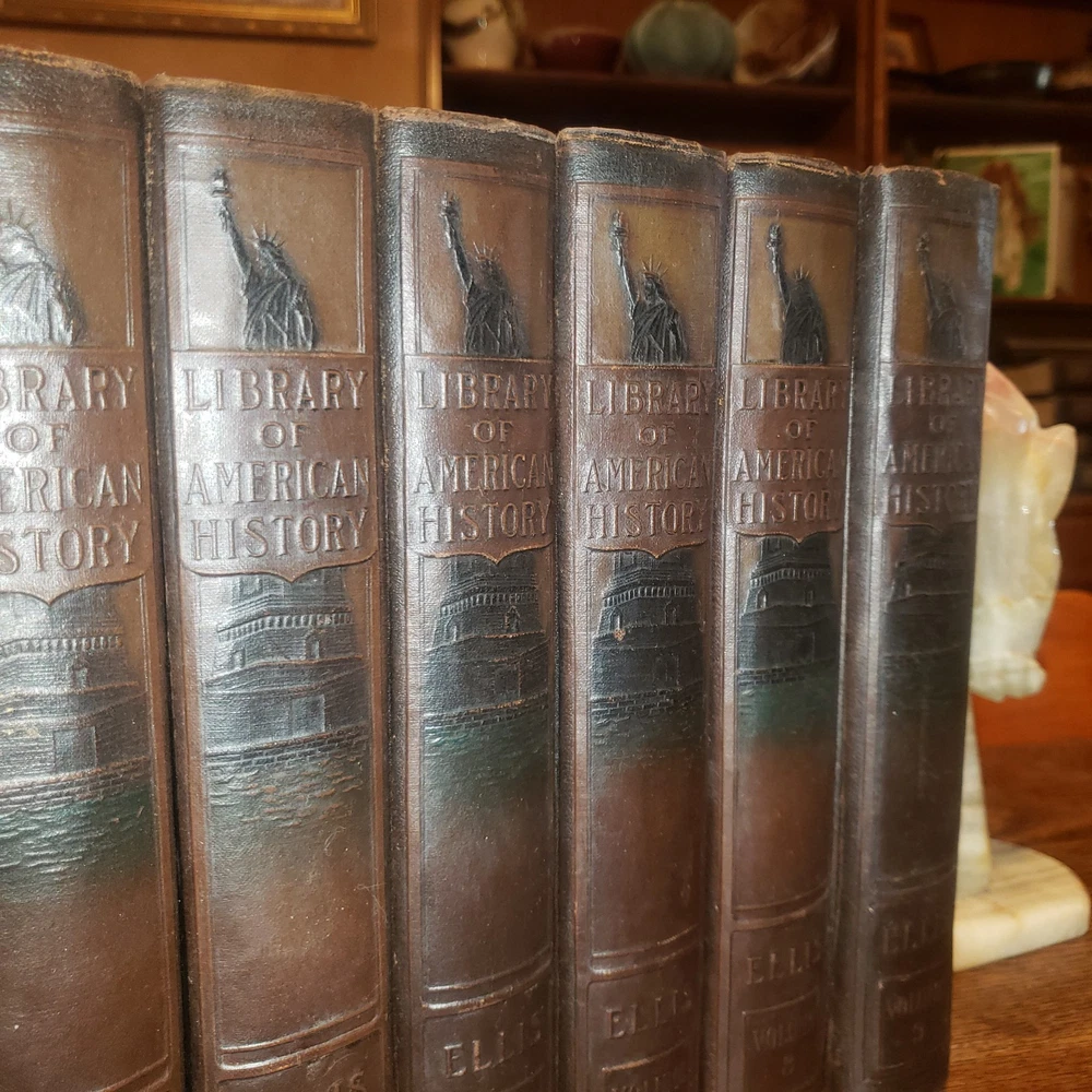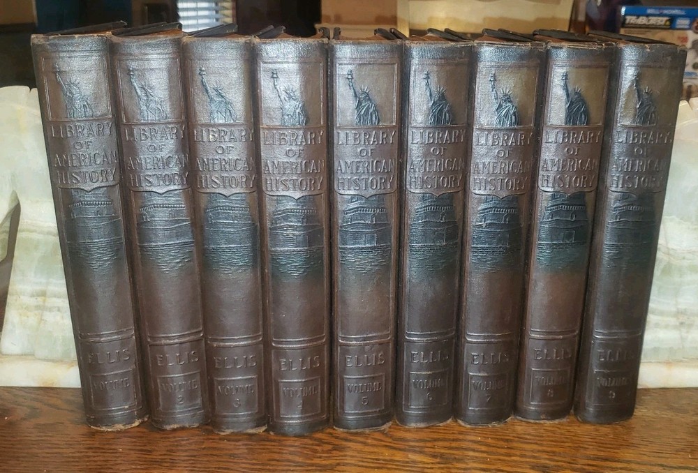 I AM PLEASED TO OFFER THIS NICE VINTAGE LOT OF LIBRARY OF AMERICAN HISTORY BY EDWARD S. ELLIS, COMPLETE 9-VOLUME SET 1918 1919. VERY GOOD SHAPE. THANKS AND GOOD LUCK
