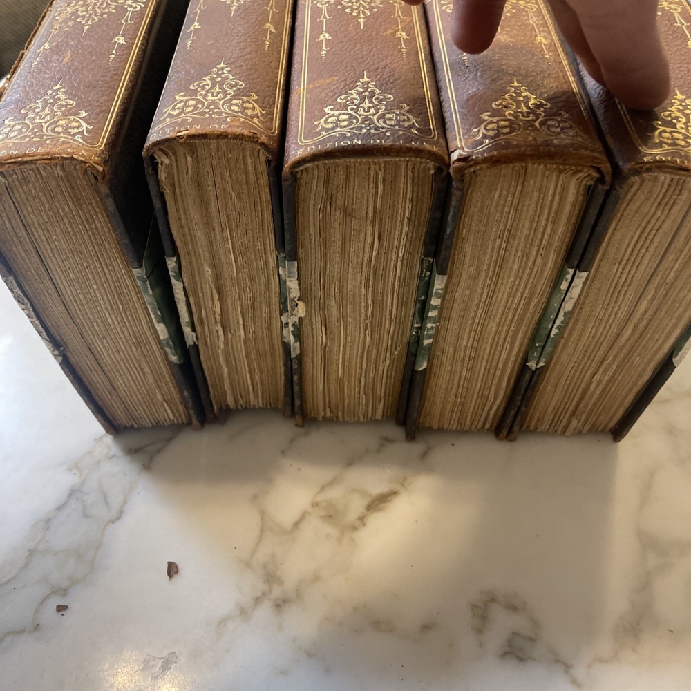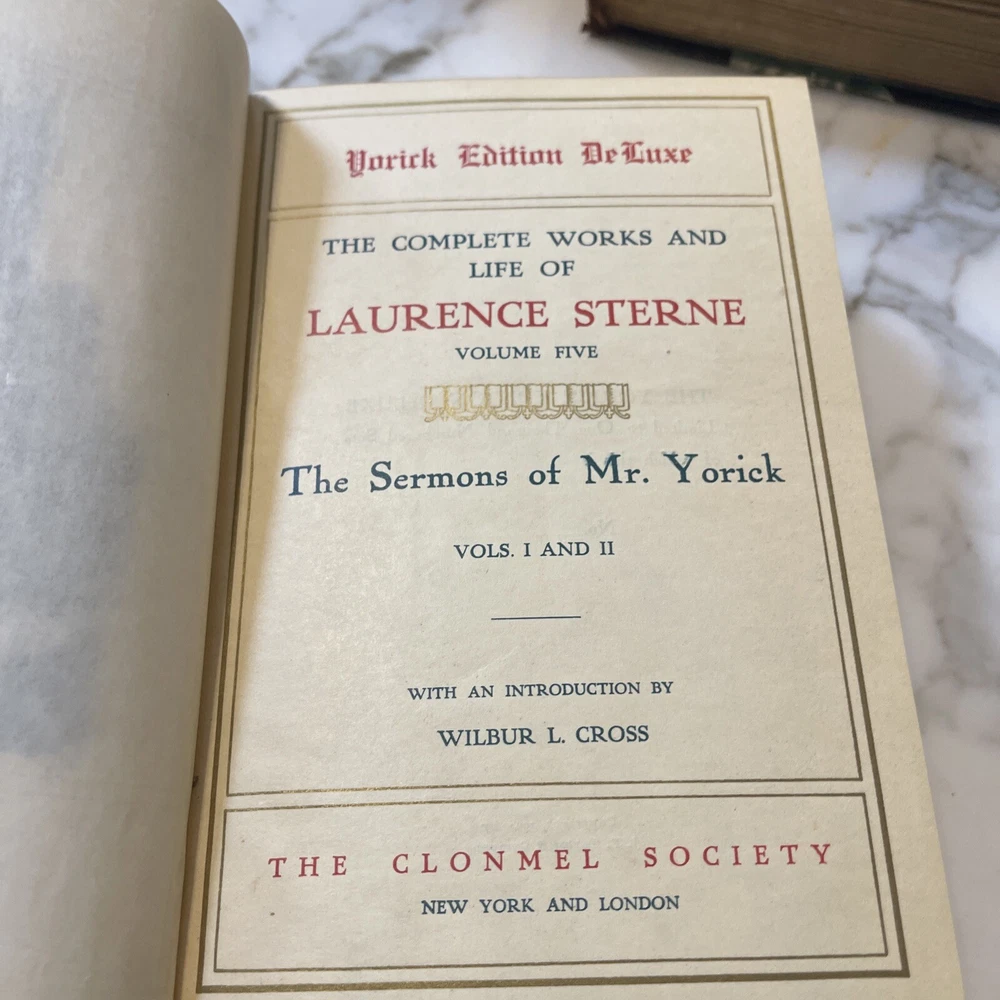 Laurence Sterne Works 1904 lovely 5 vol. leather Deluxe ed. set Antique Set 670. Appears to be limited edition Some writing. 120 years old. Beautiful books Please see scans for condition Shipped via media mail in US only