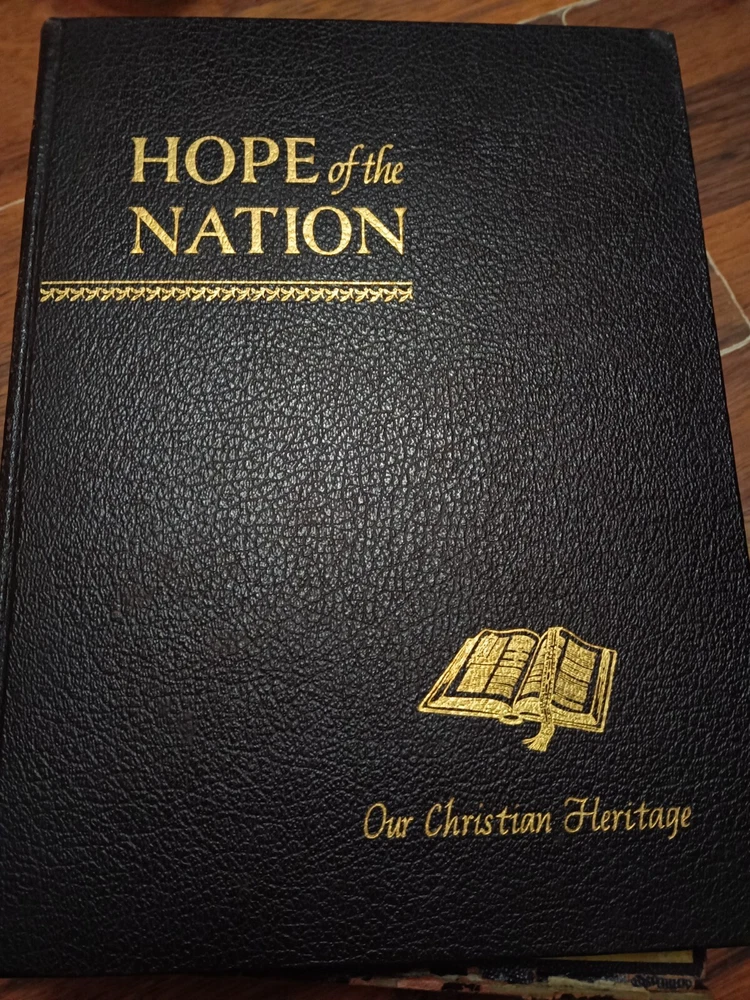 This leather-bound set titled "Hope of The Nation: Our Christian Heritage And Our American..." is a luxurious and limited collector's edition from Goodwill publish. Published in the United States in 1952, the set includes Americana-themed books written by authors Nelson Beecher Keyes and Edward Felix Gallagher. The books are illustrated by various artists and are part of a special edition set that celebrates Christian and American heritage, making it a valuable addition to any collection focused on these topics. Sticker damage but this was published in 1952. Mint condition. Leather bound.