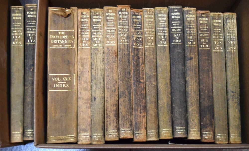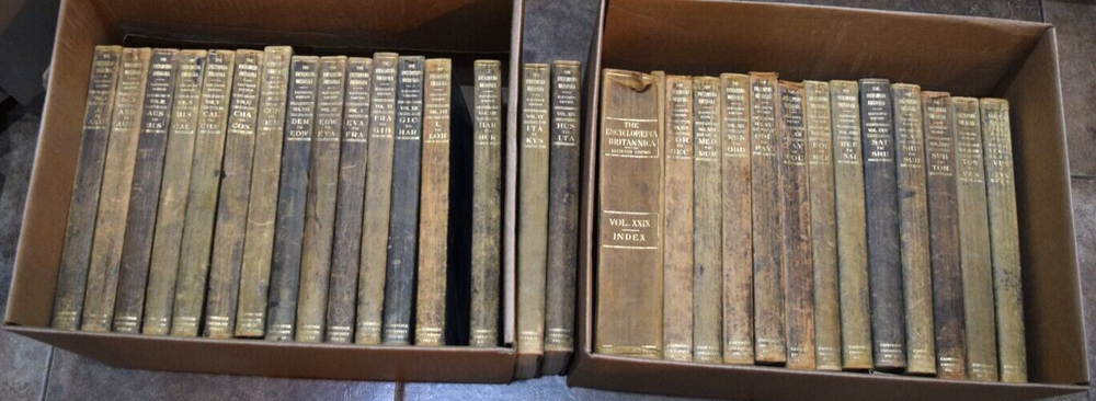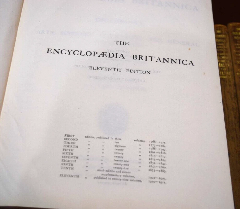 You are bidding on a Leather Bound 1911 Encyclopedia Britannica 11th Edition Set 29 Books. Please wait for the invoice, books weigh 100 lbs. Ebay only allows 70lbs in the listing. Will ship in multiple boxes. I ship worldwide and combine shipping. Please visit my store for many more quality items.