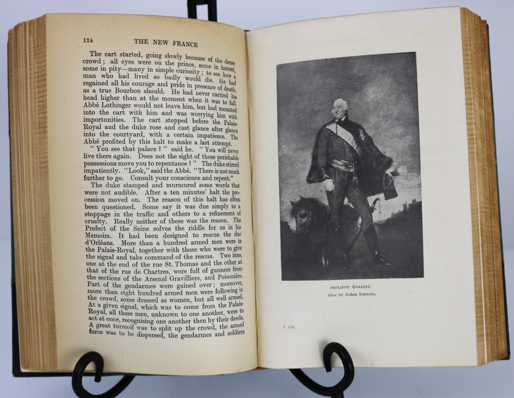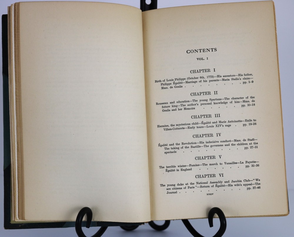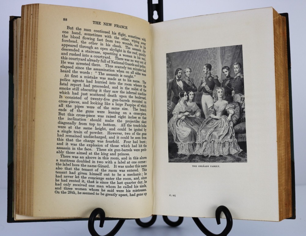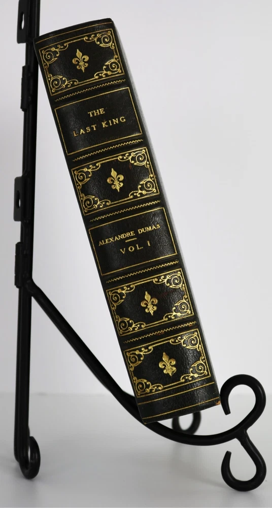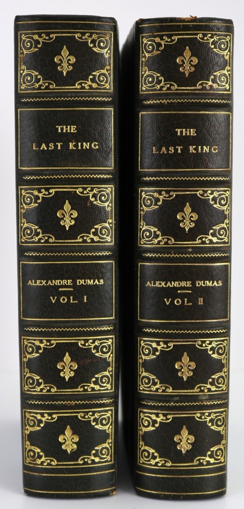 Printed in 1915, this is a leather bound 2 Volume set of The Last King or The New France by Alexandre Dumas, a history from the birth of Louis Phillippe in 1773 to the Revolution of 1848, written in 1851, translated to english in this version. Books are 8.75 in by 5.75 by 1.75 In.