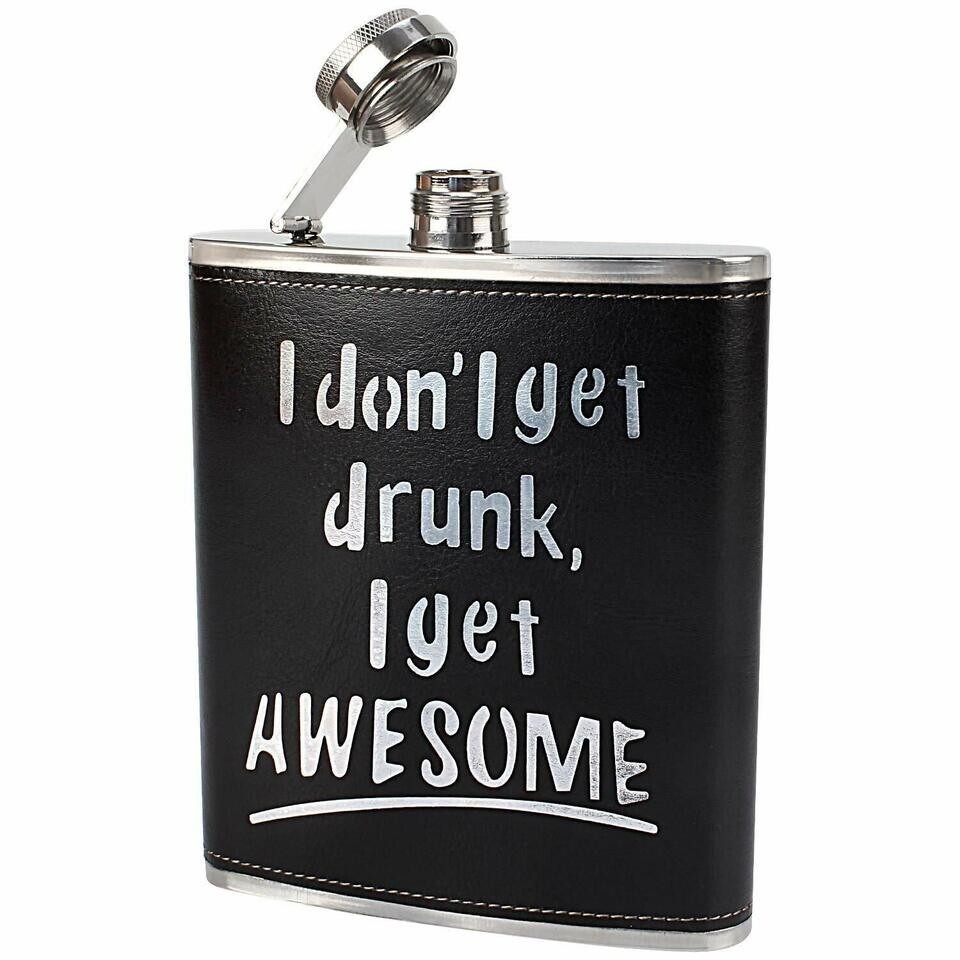 Stainless Steel Hip Flask with ‘I Don’t Get Drunk. I Get AWESOME’ Cut Out on Premium Quality Leather Cover. High Quality Stainless Steel Hip Flask Bound in Premium Quality Stitched Leather. Captive Screw Cap Prevents Spillage and Leakage. Set Comes with 4 Stainless Steel Shot Glasses and 1 Funnel for Pouring Drinks. Share Drinks with Friends on Special Occasions and Birthdays. Ideal Gift Set for Gifting it on Anniversaries and Birthdays. Capacity: 18oz (530 ml). Package Contains Hip Flask Set (1 Hip Flask, 4 Shot Glasses and 1 Funnel). Hello ! Welcome to our eBay portal. We assure you about high quality products and services at competitive prices. If you have any questions or any specific requirement, please feel free to contact us- we would be really happy to serve you. Thank you for taking the time to browse through our products. Happy Buying !! SHIPPING POLICY INTERNATIONAL ORDERS WILL BE SHIPPED BY INDIA POST/ FEDEX/ DHL/ ARAMEX. INTERNATIONAL ORDERS GENERALLY TAKE 5-9 BUSINESS DAYS TO DELIVER GOODS WORLDWIDE. RETURN WILL BE ACCEPTED WITHIN 30 DAYS FROM THE DATE OF DELIVERY TO THE BUYER. BUYER HAS TO PAY RETURN SHIPPING CHARGES. IF ANY TAX OR CUSTOM IS APPLICABLE AT BUYERS' COUNTRY, BUYER HAS TO PAY ALL SUCH TAXES AS PER LAW. ORIGINAL PRODUCT MAY SLIGHTLY VARY DUE TO PHOTOGRAPHIC EFFECTS. BRIGHT SIDE OF PHOTO IS SELECTED AND THEY ARE BRIGHT DUE TO HEAVY FLASH AND LIGHT. Before you open any case and leave a negative feedback, please contact us,so we can work on any issues & mutually solve problems. Thank you ! Please give us Positive Feedback and 5 STAR in all criterias. TELL US HOW CAN WE MAKE YOUR EXPERIENCE A 5-STAR ONE!!! PAYMENT POLICY Payment Accepted via Pay pal