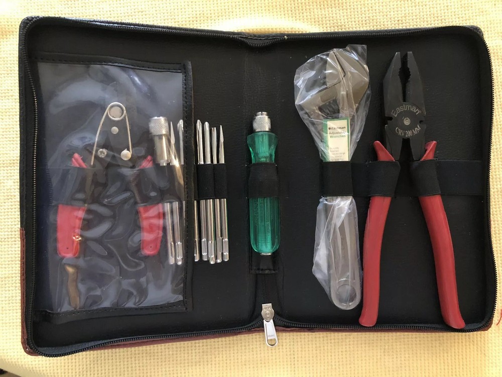 Beautiful, zippered leather bound Home Tool Kit by Eastman. This would make a great gift! Includes CRV200MM Pliers, Adjustable Wrench, Multi Bit Screwdriver and Wire Cutters/Strippers. Brand New! IF IT IS NOT SHOWN IN THE PHOTOGRAPHS IT DOES NOT COME WITH IT. SO CHECK PHOTOGRAPHS CAREFULLY. π³π³π³π³ PLEASE CHECK THE PICTURES FOR DETAILS. π³π³π³π³ πΊπΈπΊπΈπΊπΈ....FREE SUPER FAST SHIPPING ANYWHERE IN USA. ....πΊπΈπΊπΈπΊπΈ .....WE DO NOT SHIP TO P.O. BOXES PLEASE PROVIDE A PHYSICAL ADDRESS, ..... IF THE ITEM IS NOT PAID WITHIN THREE DAYS IT WILL BE RELISTED UNLESS WE ARE CONTACTED. ............ . ..π€π* WE SHIP EVERY DAY MONDAY TROUGH FRIDAY *π€π ................................. AND WE ARE HAPPY TO DO IT, MY GOAL IS TO SHIP WITHIN 1 BUSINESS DAY OF RECEIPT PAYMENT, SO YOU GET YOUR ITEMS BETWEEN 2 OR 3 DAYS. PLEASE NOTE THAT WEEKEND AND HOLIDAYS MAY OCCASIONALLY CAUSE DELAYS. IF YOU PAY ON MONDAY IT WILL BE SHIP ON TUESDAY, .......IF YOU PAY ON TUESDAY IT WILL SHIP ON WENSDAY, .....IF YOU PAY ON WENSDAY IT WILL SHIP ON THURSDAY, ....IF YOU PAY ON THURSDAY IT WILL SHIP ON FRIDAY, ... IF YOU PAY ON FRIDAY IT WILL BE SHIP ON MONDAY. WE ONLY TAKE PAYMENTS WITH PAYPAL, .... THANK YOU FOR YOUR INTEREST. WE SHIP GLOBALLY USING EBAY'S GSP, THE ITEM IS SEND TO A LOGISTIC CENTER IN KY AND SHIPPED FROM THERE TO THE REST OF THE WORLD, ..... INTERNATIONAL CUSTOMERS ARE RESPONSIBLE FOR ALL DUTIES AND TAXES. π**SORRY NO SHIPPING ON SATURDAYS** π π€π€ YOUR POSITIVE FEEDBACK IS VERY IMPORTANT FOR US..... THANK YOU ... π€π€ πΊπΈπΊπΈπΊπΈπΊπΈπΊπΈπΊπΈπΊπΈπΊπΈπΊπΈ