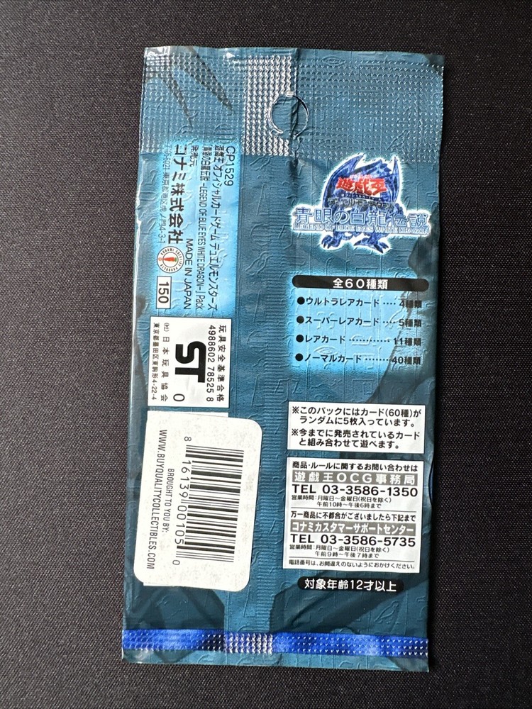 This vintage Yu-Gi-Oh! OCG booster pack is a must-have for collectors! The crease near the cards doesn’t affect the nostalgia factor—it’s still a rare gem with the iconic Blue-Eyes artwork. Perfect for fans who appreciate original Japanese releases. A small flaw, but the thrill of owning a piece of history makes it worth it!