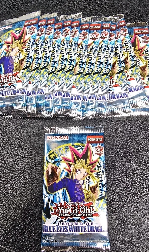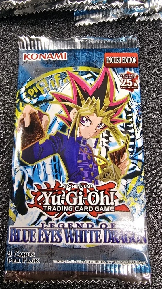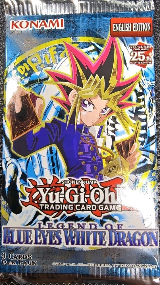 *** You are buying 1 unopened factory sealed pack*** 9 cards per pack. Shipping is a hard envelope If you purchase more, then one pack shipping will vary. Don't pay until I send you an invoice for shipping. Thanks for looking! The Legend of Blue Eyes White Dragon YuGiOh 25th Anniversary Booster Pack *1* SEALED is a highly collectible item featuring cards from the iconic Yu-Gi-Oh! TCG set. This pack contains 9 cards of Japanese size, including characters like Yami Yugi, Seto Kaiba, and Yugi Muto. Manufactured by Konami, this English-language booster pack is a must-have for fans of the Yu-Gi-Oh! TV show and game. With its limited edition release in 2024, this pack is perfect for collectors and players alike.
