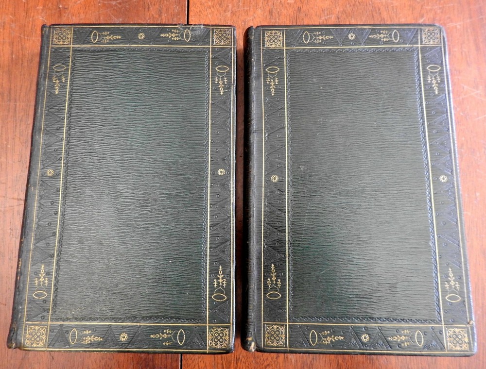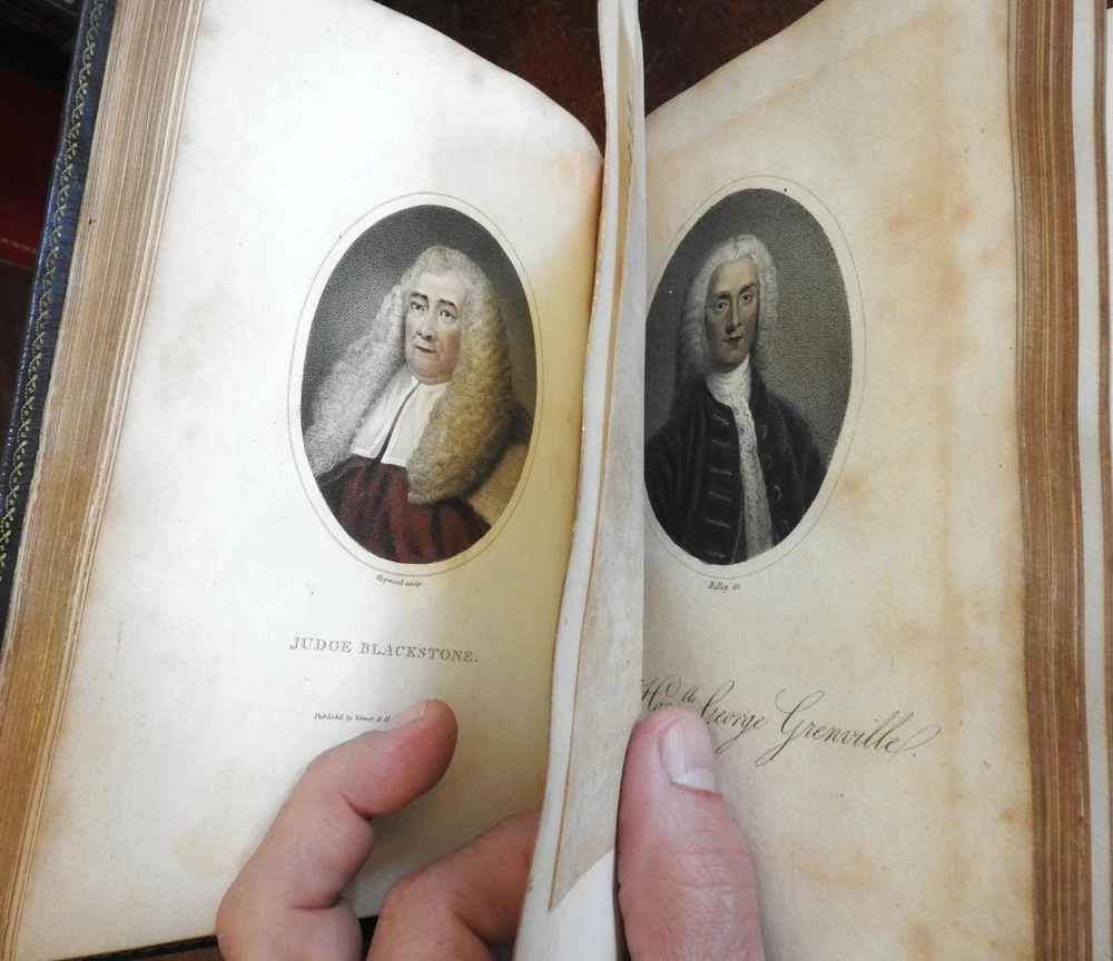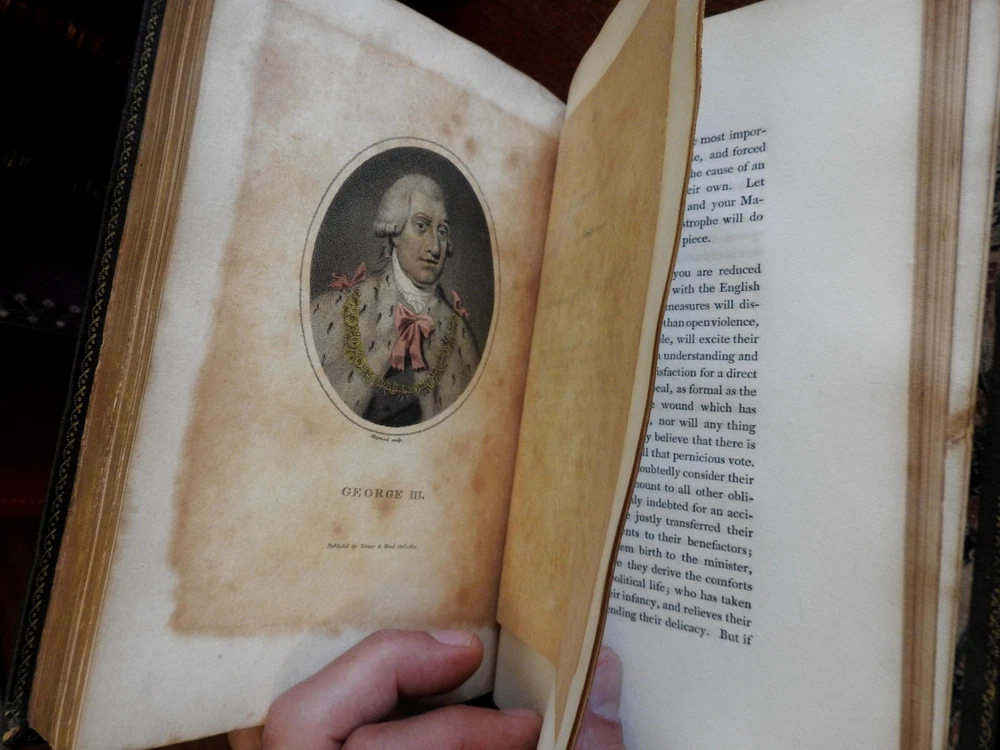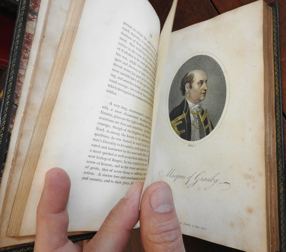 Letters of Junius British Politics 1805 w/ 21 aquatint portraits 2v leather set Letters of Junius British Politics 1805 w/ 21 aquatint portraits 2v leather set (Old Books, 19th Century Books, Leather Books, Decorative Book Bindings, Illustrated Books, British Politics). Click here to view a short video presentation. Short video captures condition much better than photos. Please watch prior to purchase to ensure a full understanding of the set. Junius. Published 1805, London by T. Bensley. 2 volumes. 252, 284 pages. Text in English. Profusely illustrated with 21 aquatint, hand colored portraits. Period full leather bindings, smooth spines, gilt bands, gilt compartment decorations & title lettering, all edges & turn ins gilt, marbled end papers. Item is physically old and shows some signs of handling and time. Item is not new or in "new" condition. Binding gently age worn, leather rubbed but still supple, joints slightly scuffed, remains overall attractive as an object. Text block paper is gently toned, light to moderate scattered age spotting, some of the plates lightly browned, internally still well preserved, tight, sound. Still attractive on the shelf. Book displays a pleasing and unique age patina and is in nice antiquarian condition, any age flaws easy to overlook or forgive. Please review photos for more detail and our best attempt to convey how this antique item survives. Book Measures c. 8 1/4" H x 5 1/4" W. [B2684].