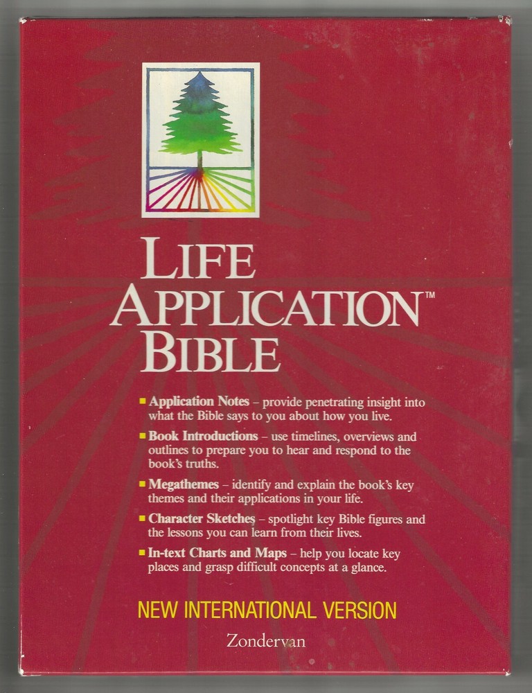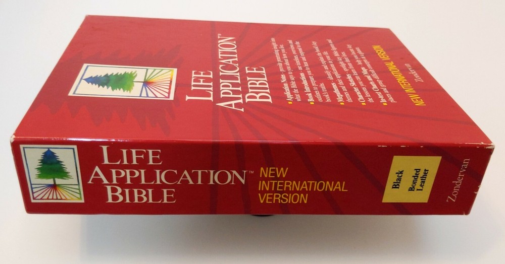Life Application Bible, New International Version; Zondervan Publishing House, Grand Rapids, Michigan, 1995; bonded leather with gilt edges on pages IN ORIGINAL BOX NEW NEVER USED box has minor wear to the corners ACTUAL ITEM SHOWN; NOT A STOCK PHOTO PROFESSIONAL SHIPPING -- SECURELY PACKAGED IN A BOX I have sold vintage children’s books professionally for over forty years. I retired and closed my brick-and-mortar store in 2015 and am now selling off volumes from my personal collection. Satisfaction guaranteed. If for any reason you are unsatisfied with your purchase a refund will be issued when the volume is returned in the condition in which it was sent. This refund does not include postage costs unless there was a mistake in the ebay listing or volume is damaged in shipping.