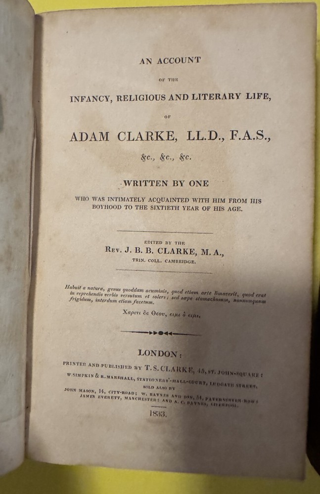 Title : The Life of Adam Clarke by J.B.B. Clarke - 2 Volume Set Description: Published in 1833. Leather spines. The covers have general wear. The bindings and hinges are in good condition. The pages are all in good condition with light age related foxing. Please see the photos. B(4/28/25) - kt