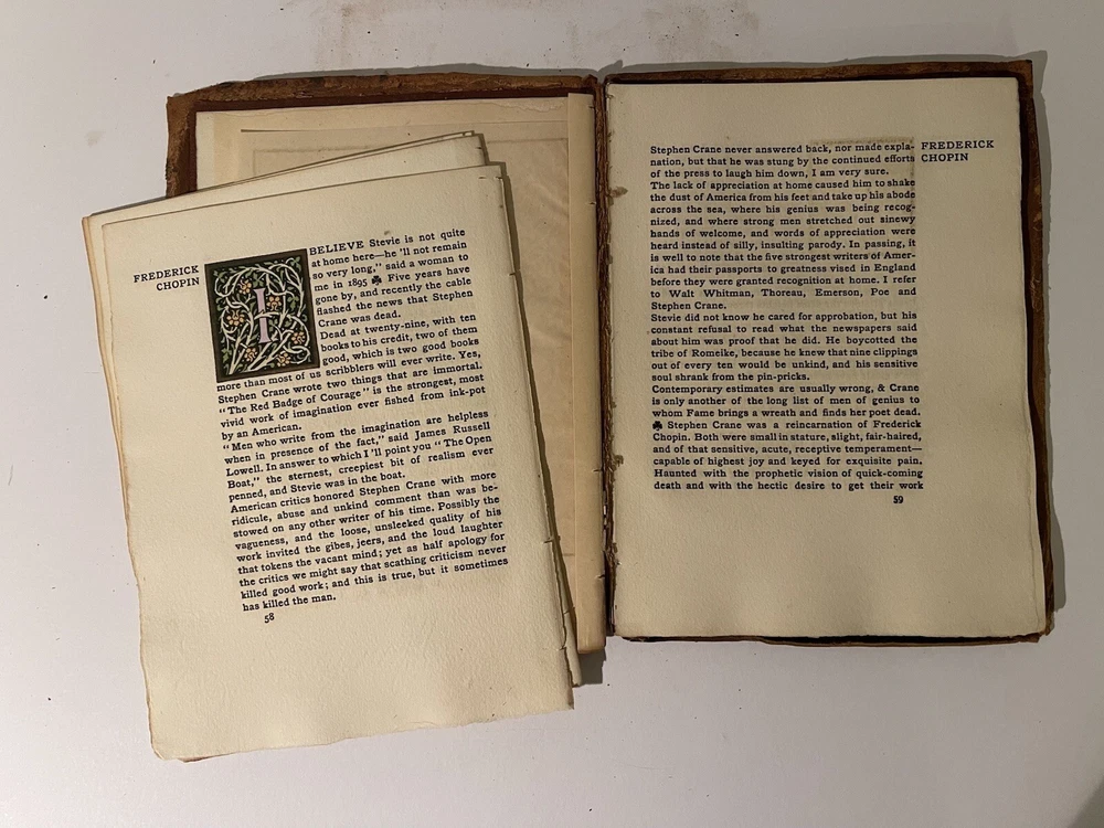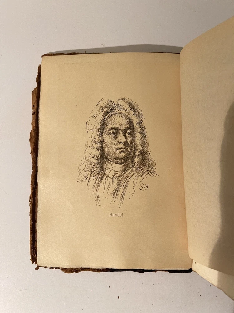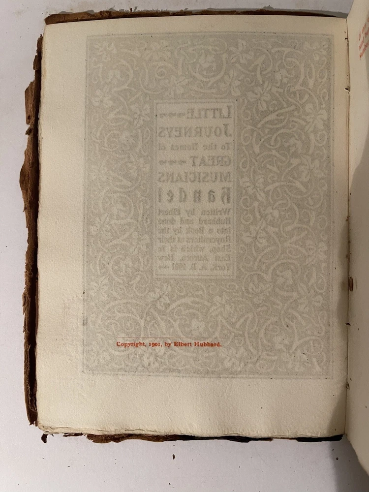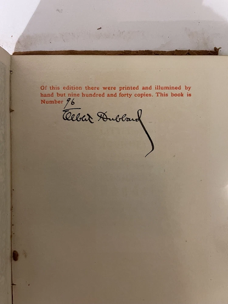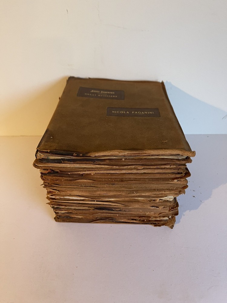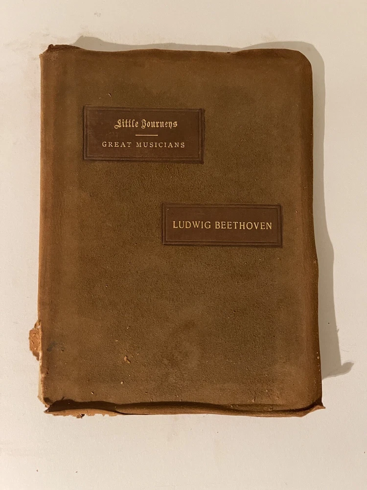 Little Journeys To The Homes Of Great Musicians (Set of 12) 1901 Hubbard SIGNED The books are approximately 8 inches by 6 inches. The cover is made out of a suede leather. These are all limited edition books numbered each out of 940. Signed by Elbert Hubbard. A few of the books have detached pages which I tired to show in the pictures. All books must be handled gently due to age. Please review photos for exact condition. Feel free to message with any questions.
