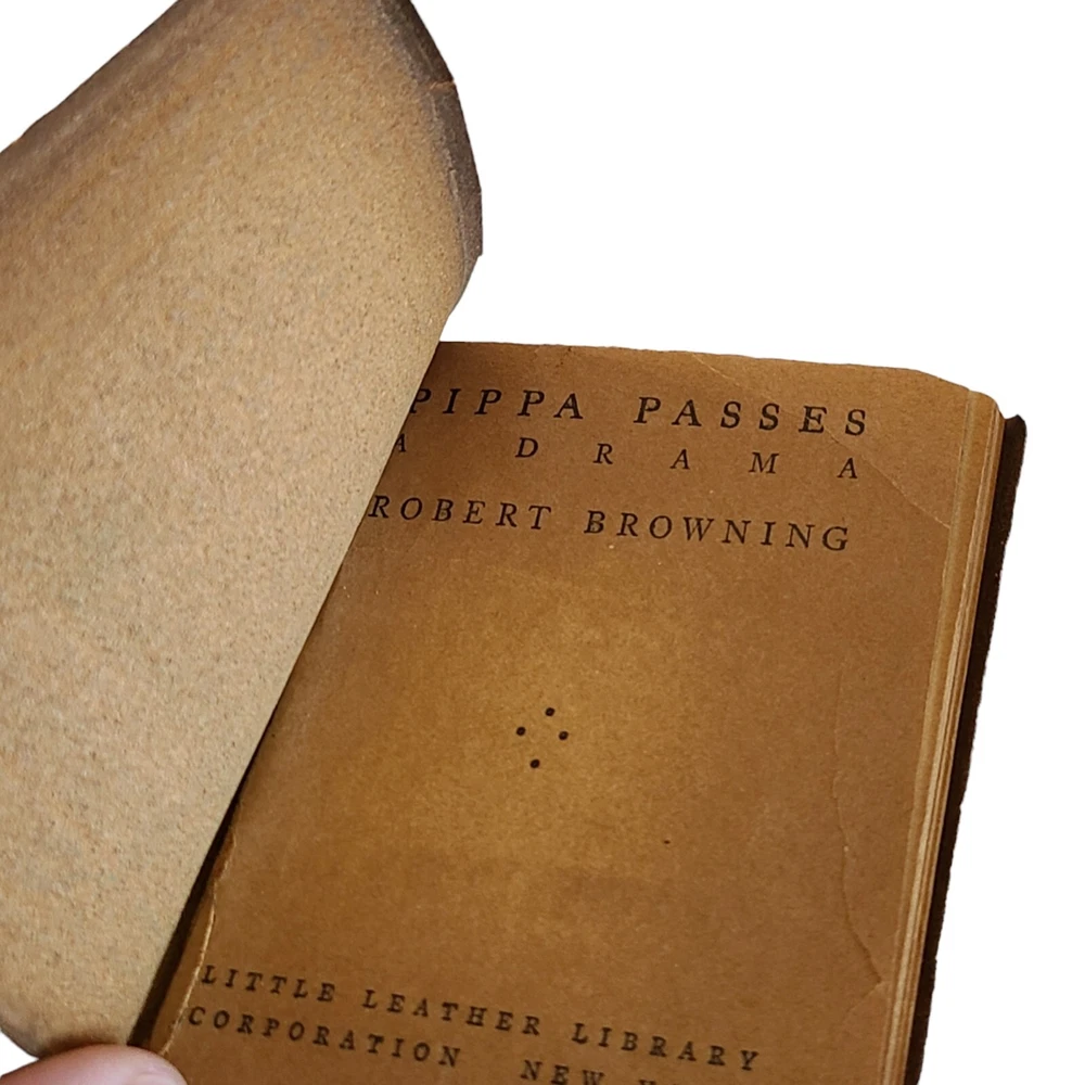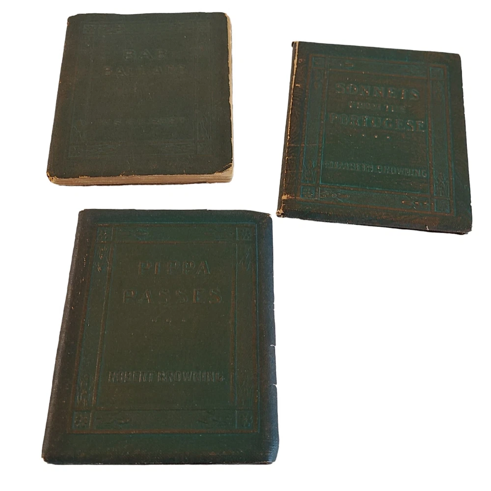 Little leather library books from the 1920s. Set of three books includes Pippa Passes by Robert Browning Baby Ballads by W. S. Gilbert Sonnets from the Portugese by Elizabeth Browning Each leather bound book measures 3" x 4". Antique books Miniature books Poetry books Vintage ephemera